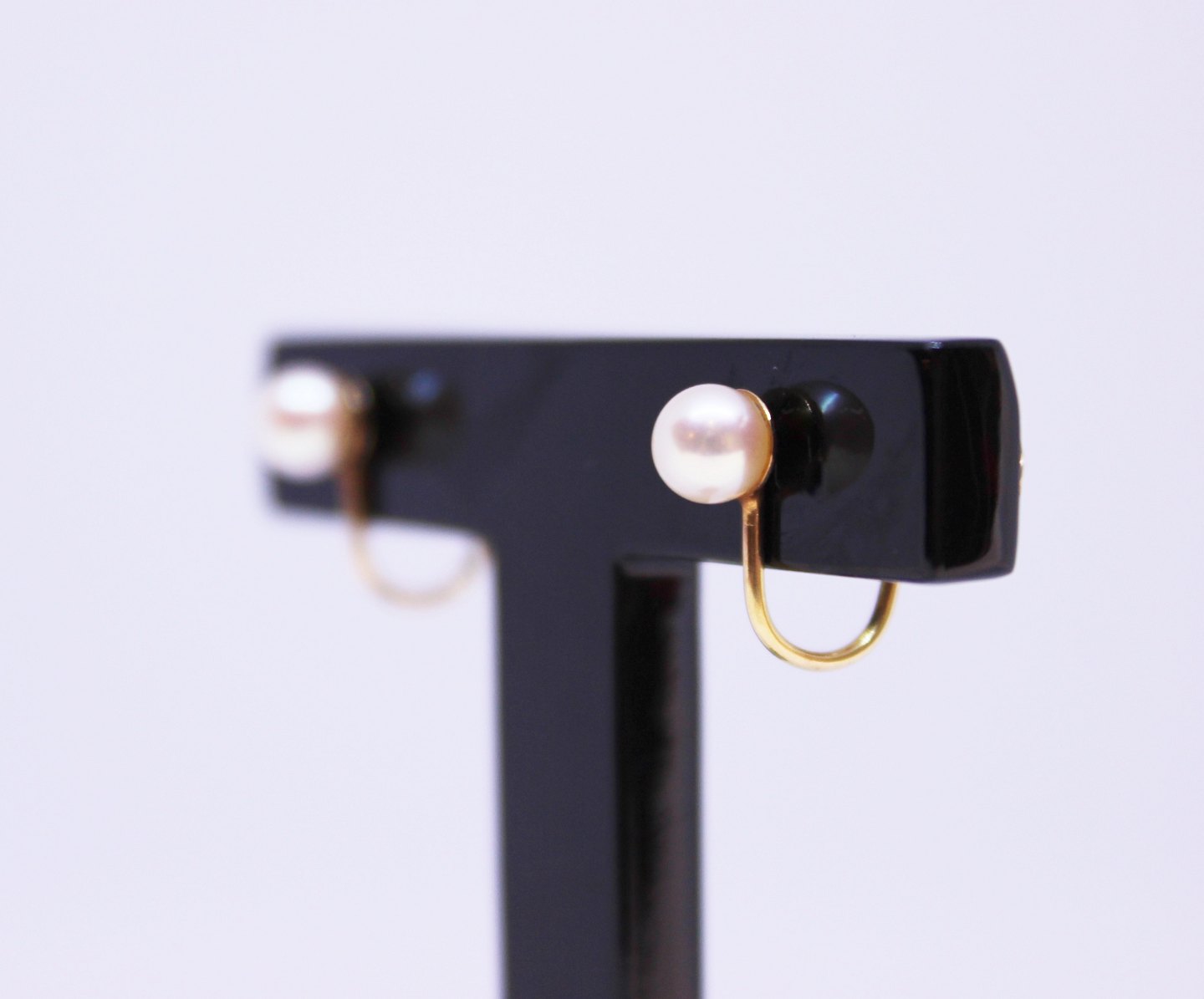 SoldA pair of earrings with screw lock of 14 ct. gold and cultured pearls, stamped CB.