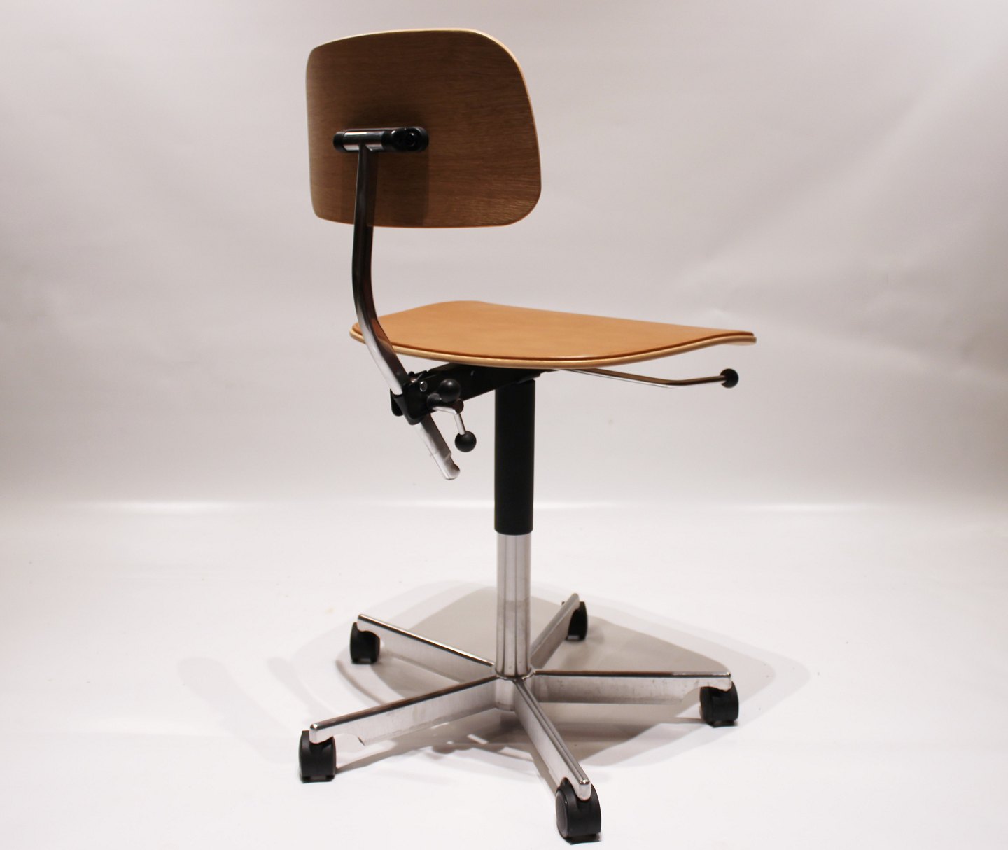 SoldKEVI 2533 office chair in oak and seat of cognac colored leather designed by Jørgen Rasmussen and manufactured by Engelbrechts in 2017. The chair is with a frame of aluminum and in great condition. We have more in stock.