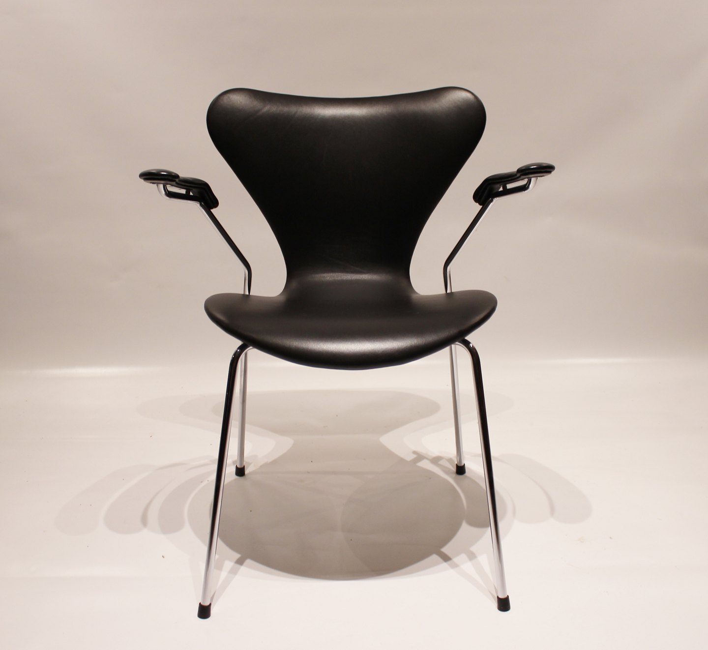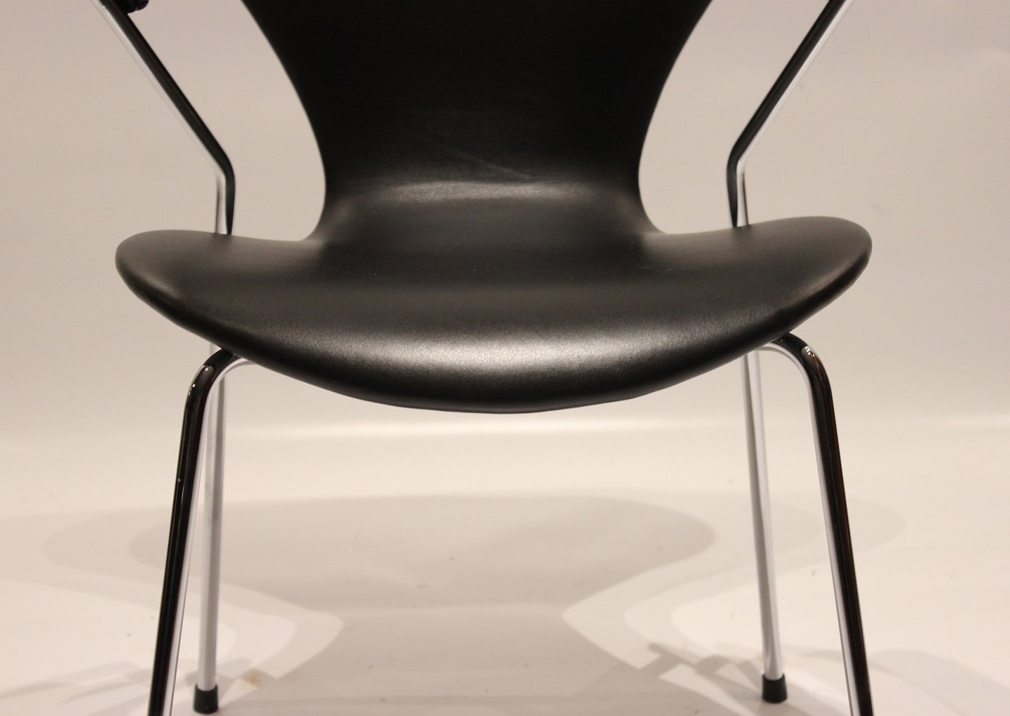 Arne Jacobsens Syver-stol er et mesterværk i sig selv, kendetegnet ved sit enkle og strømlinede design, der alligevel formår at være yderst behageligt og ergonomisk korrekt. Stolens armlæn tilføjer ekstra komfort og funktionalitet, hvilket gør den velegnet til længere perioder med brug, både ved spisebordet og som en kontorstol.