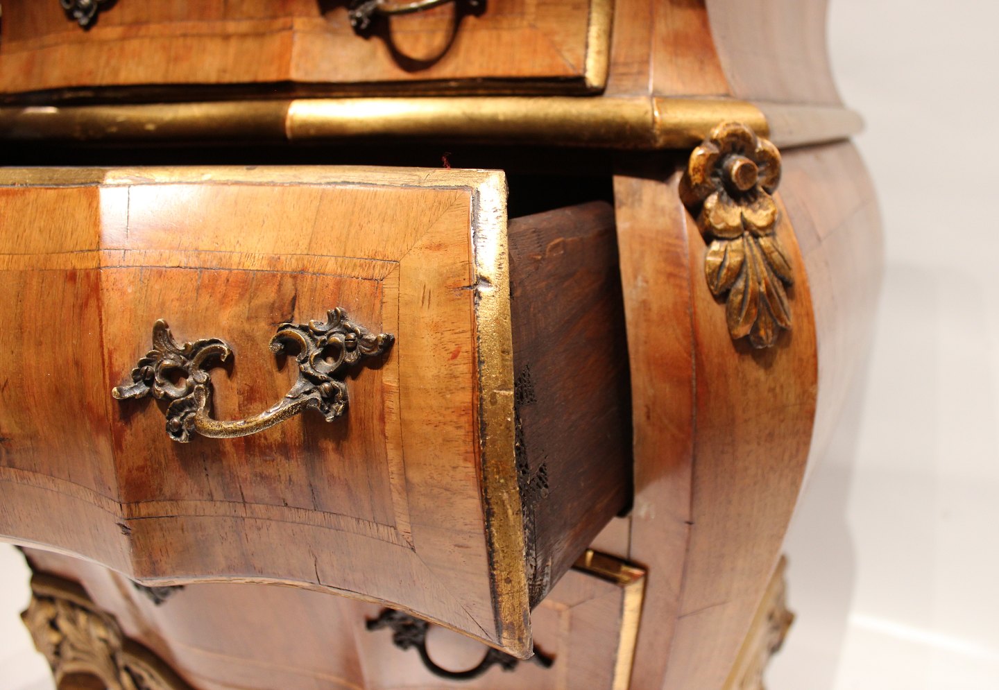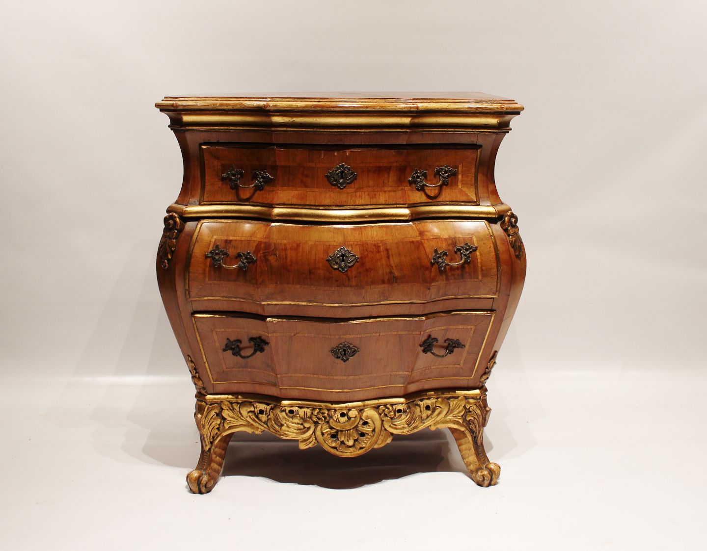 SolgtRokoko bombéformet nøddetræ kommode fra Danmark omkring år 1880. Kommoden er i flot antik stand.