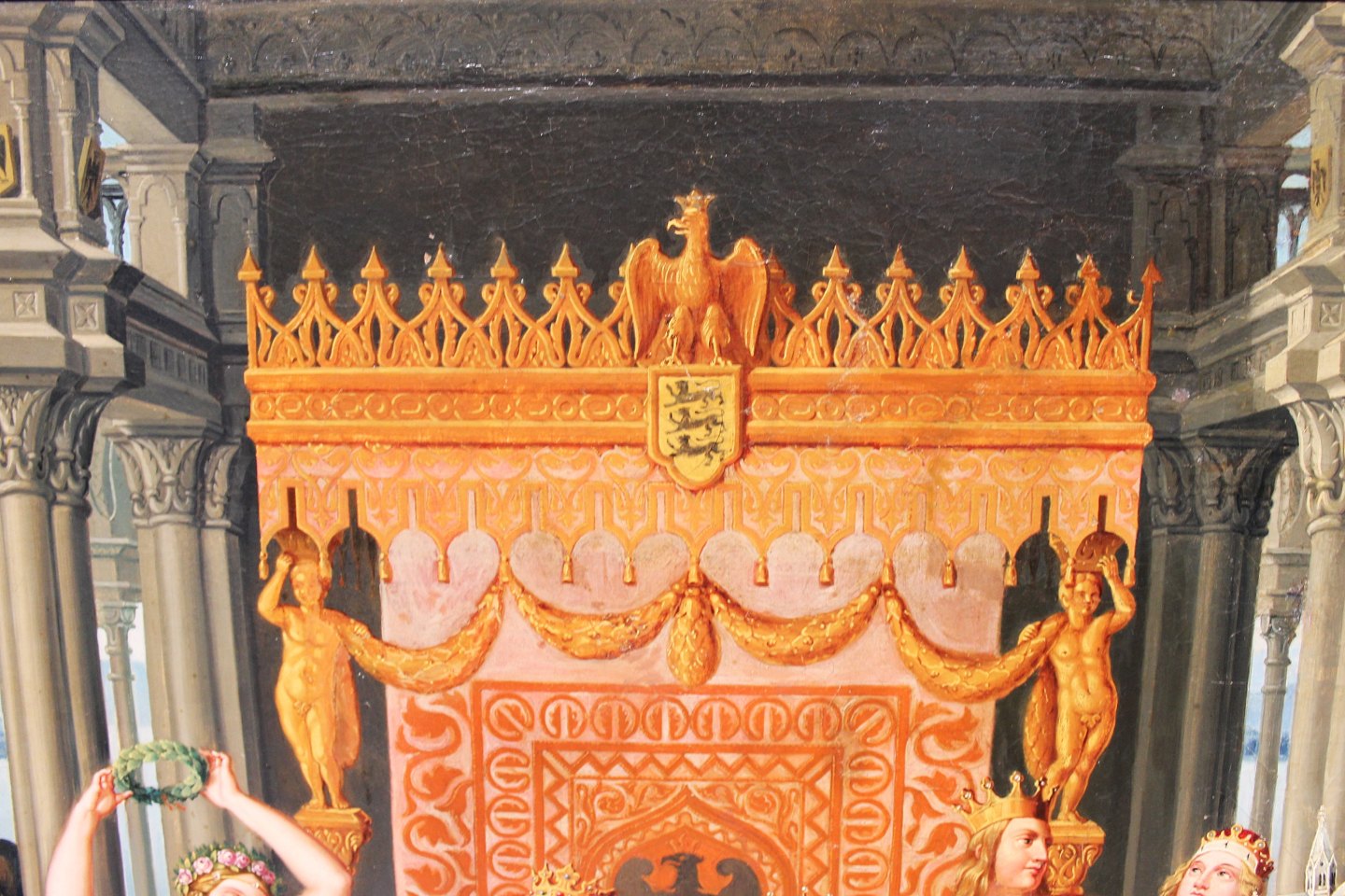 Oil painting on canvas from the 19th century by the German painter G. Otti. The painting is called "Der Niebelunge Liet", a scene which probably represents the wedding of Attila and the German princess Ildikó.