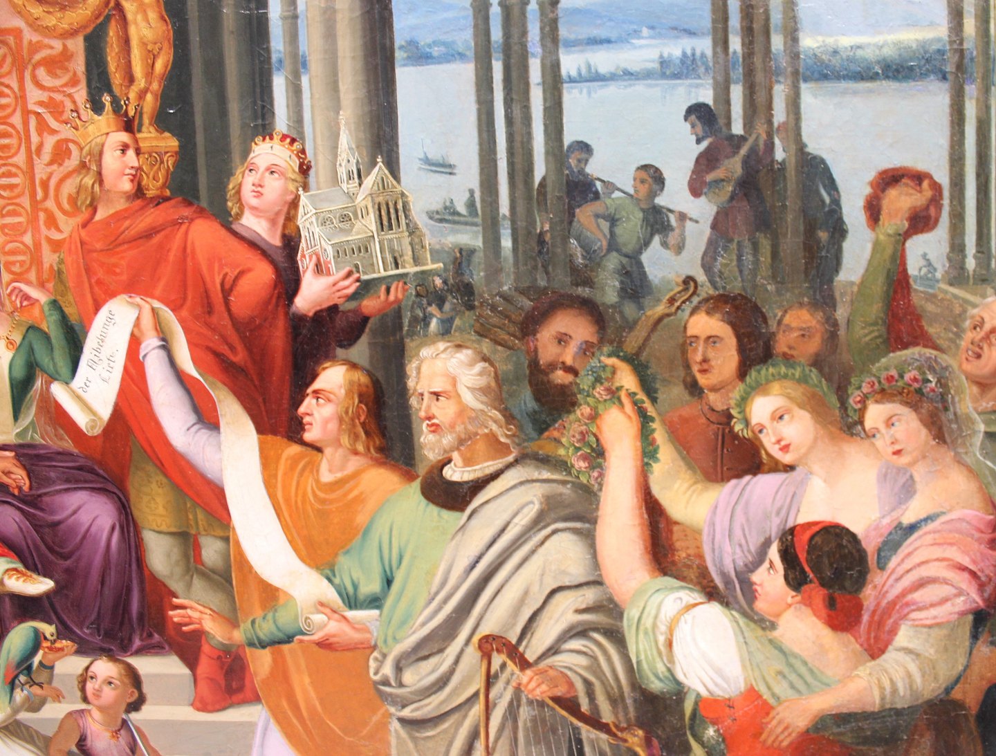 Oil painting on canvas "Der Niebelunge Liet" from the 19th century by the german painter G. Otti.