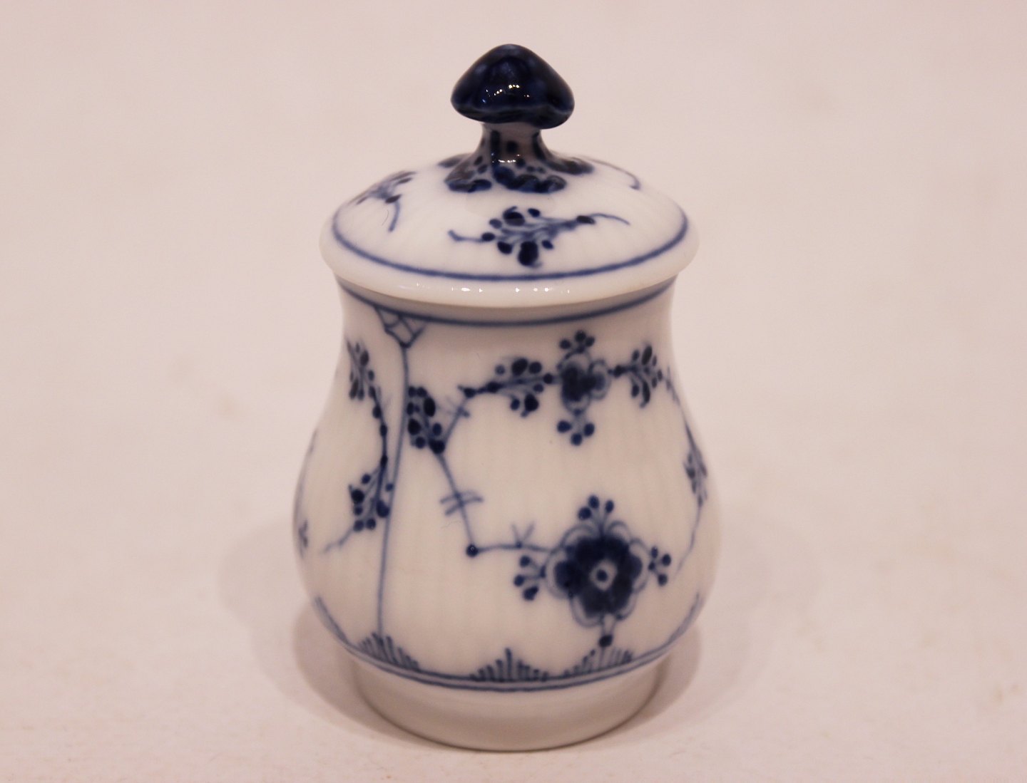 SoldRoyal Copenhagen blue fluted mustard jug, #1/358.