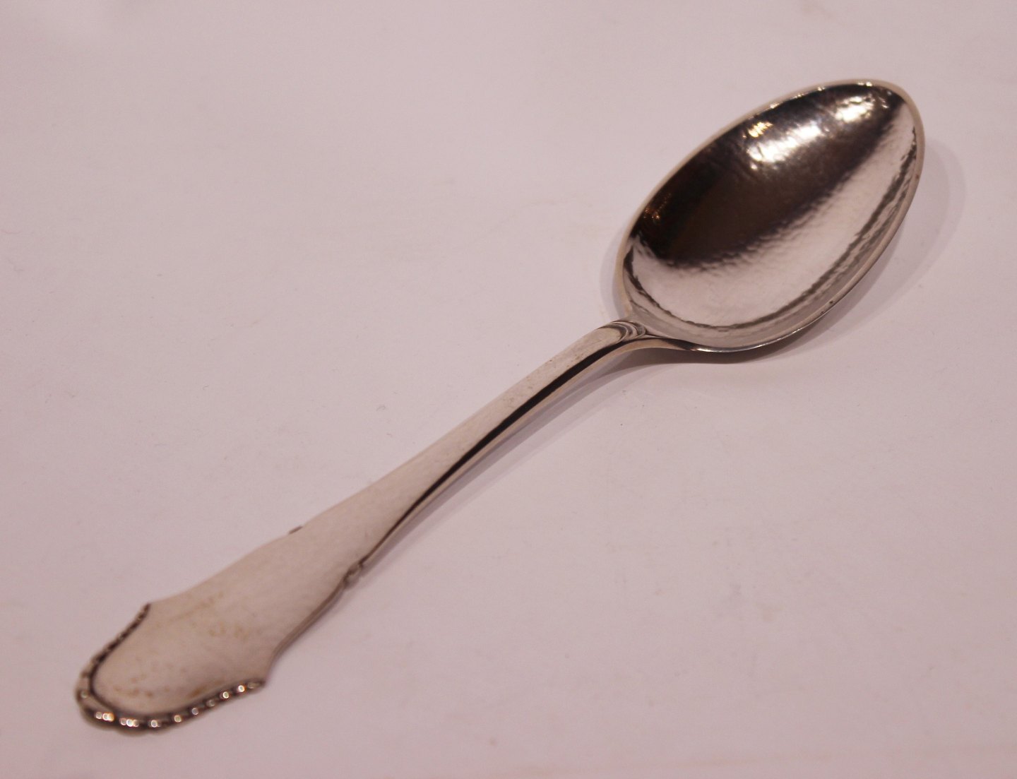 View the price in the text descriptionDinner spoon and teaspoon in Christiansborg, hallmarked silver. Ask for number in stock.