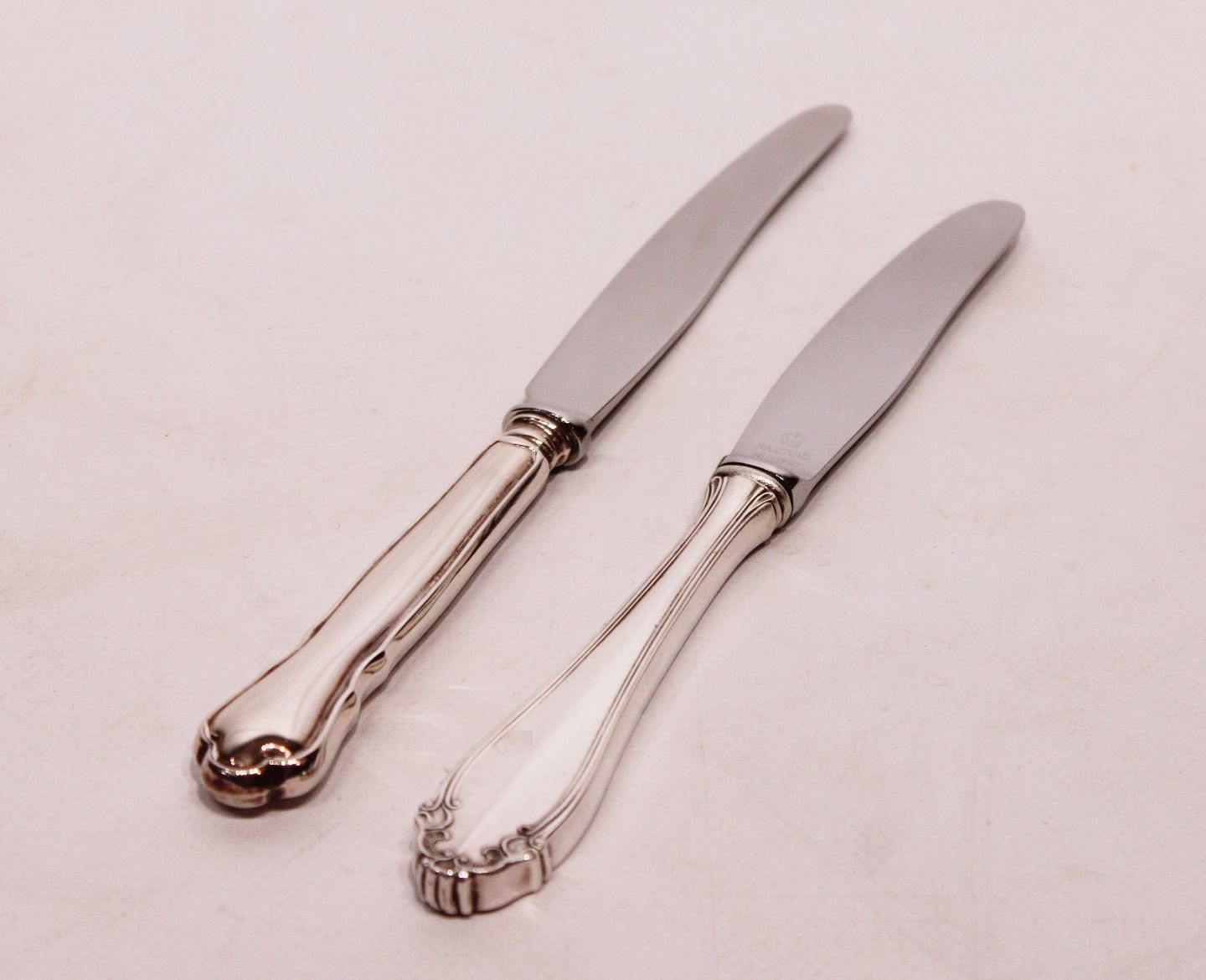 Middagsknive i forskellige mønstre af 830 og tretårnet sølv. Spørg for antal på lager.