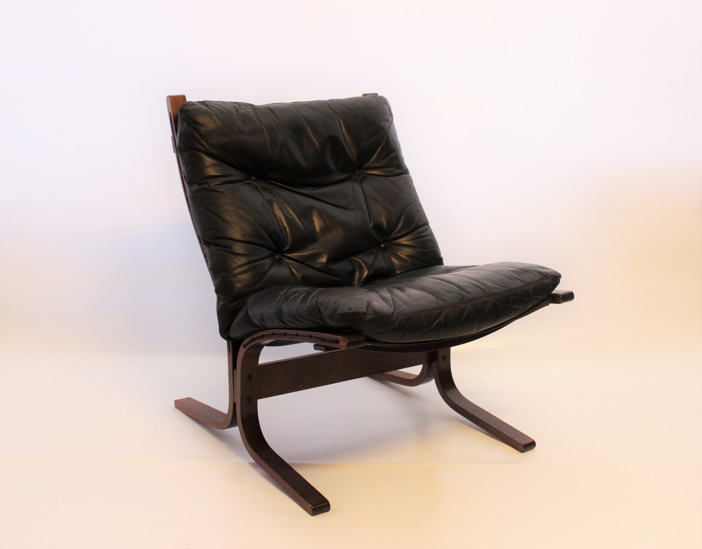 SoldA pair of Siesta easy chairs of black leather and dark wood, designed by Ingmar Relling and manufactured by Westnofa in the 1960s. The chairs are in great vintage condition.
