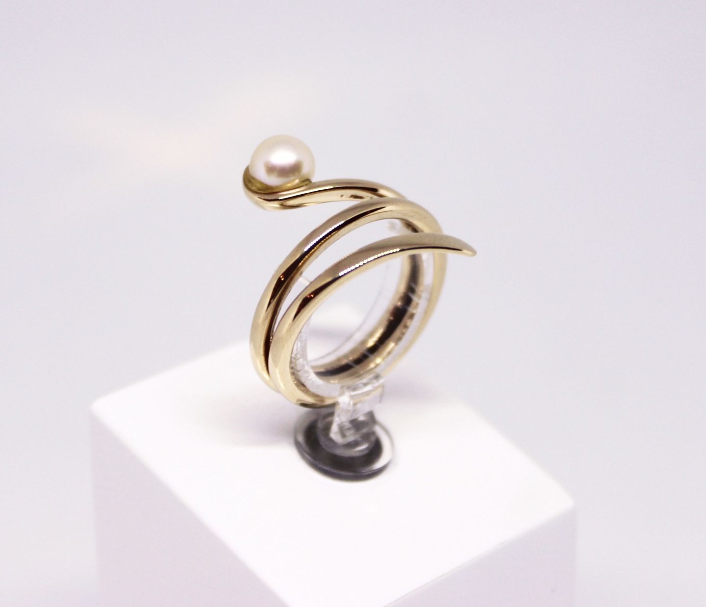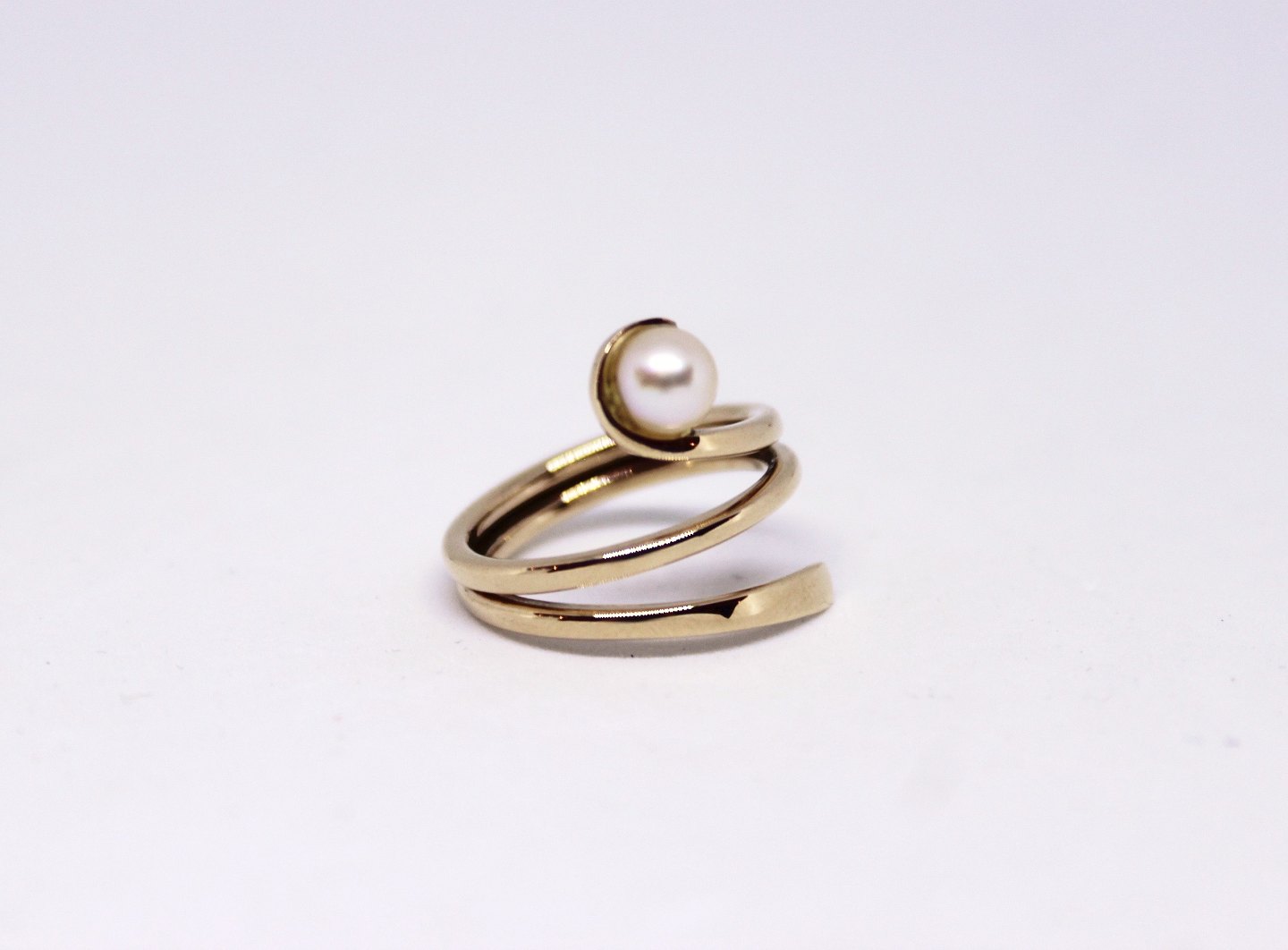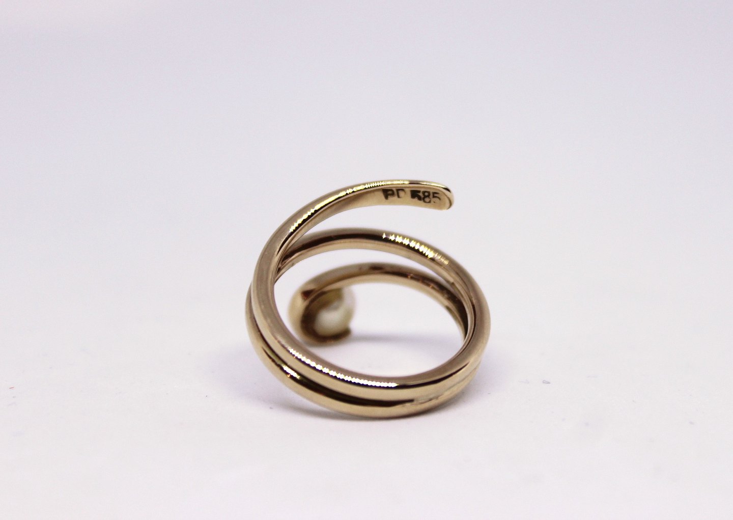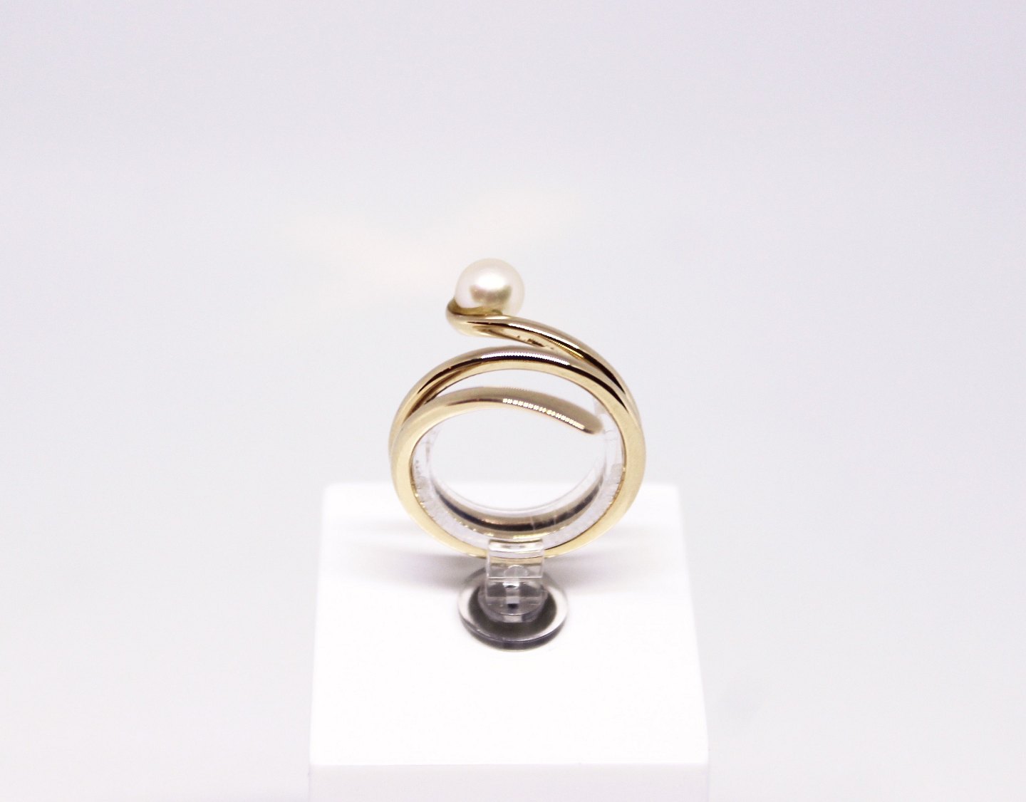 Ring of 14 ct. gold decorated with a cultured pearl and stamped PD.