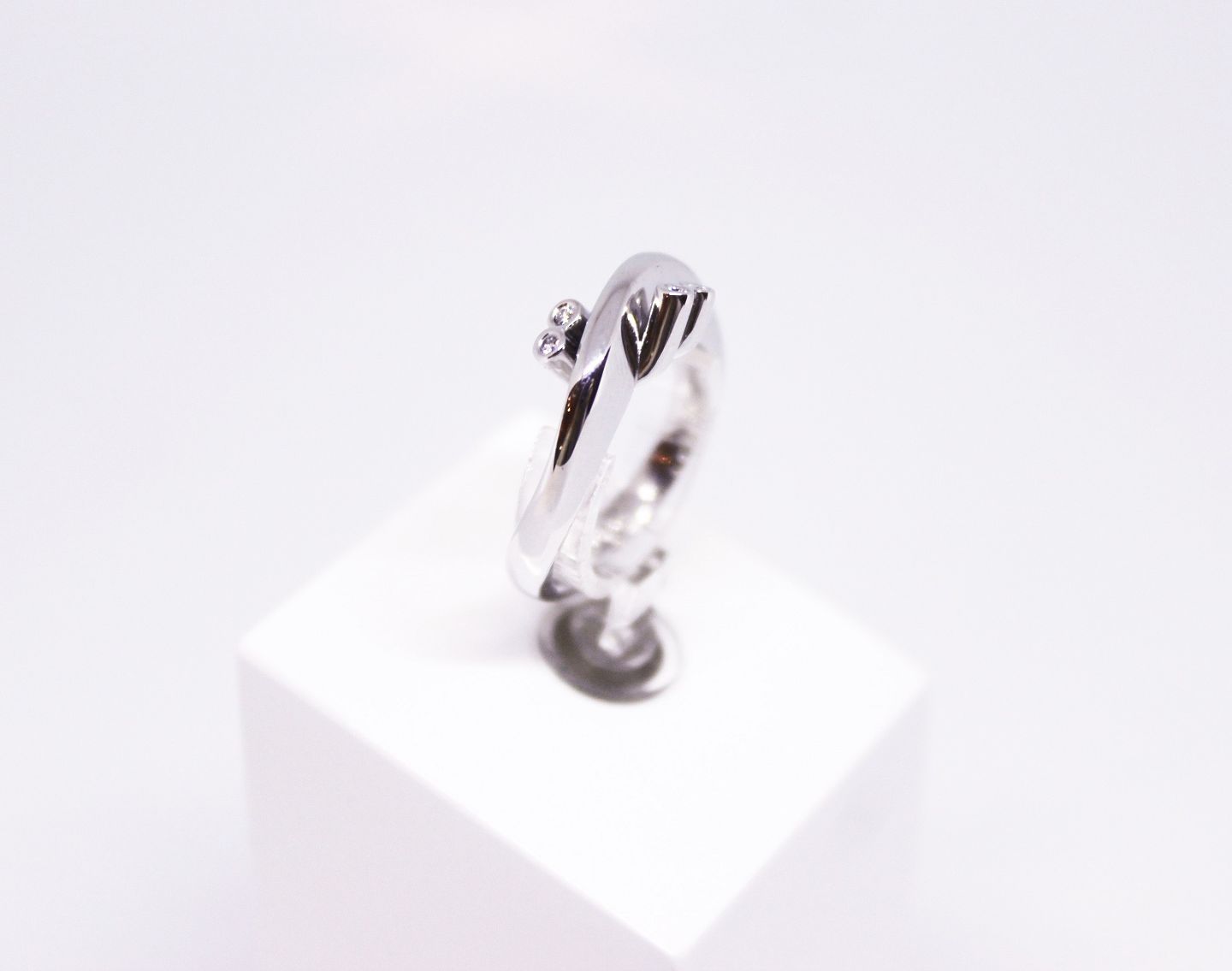 Ring of 14 ct. white gold decorated with four diamonds and stamped P.Bo.