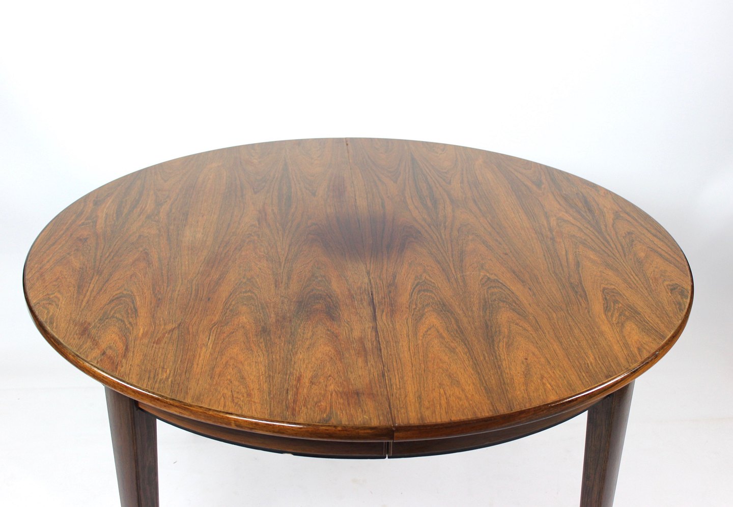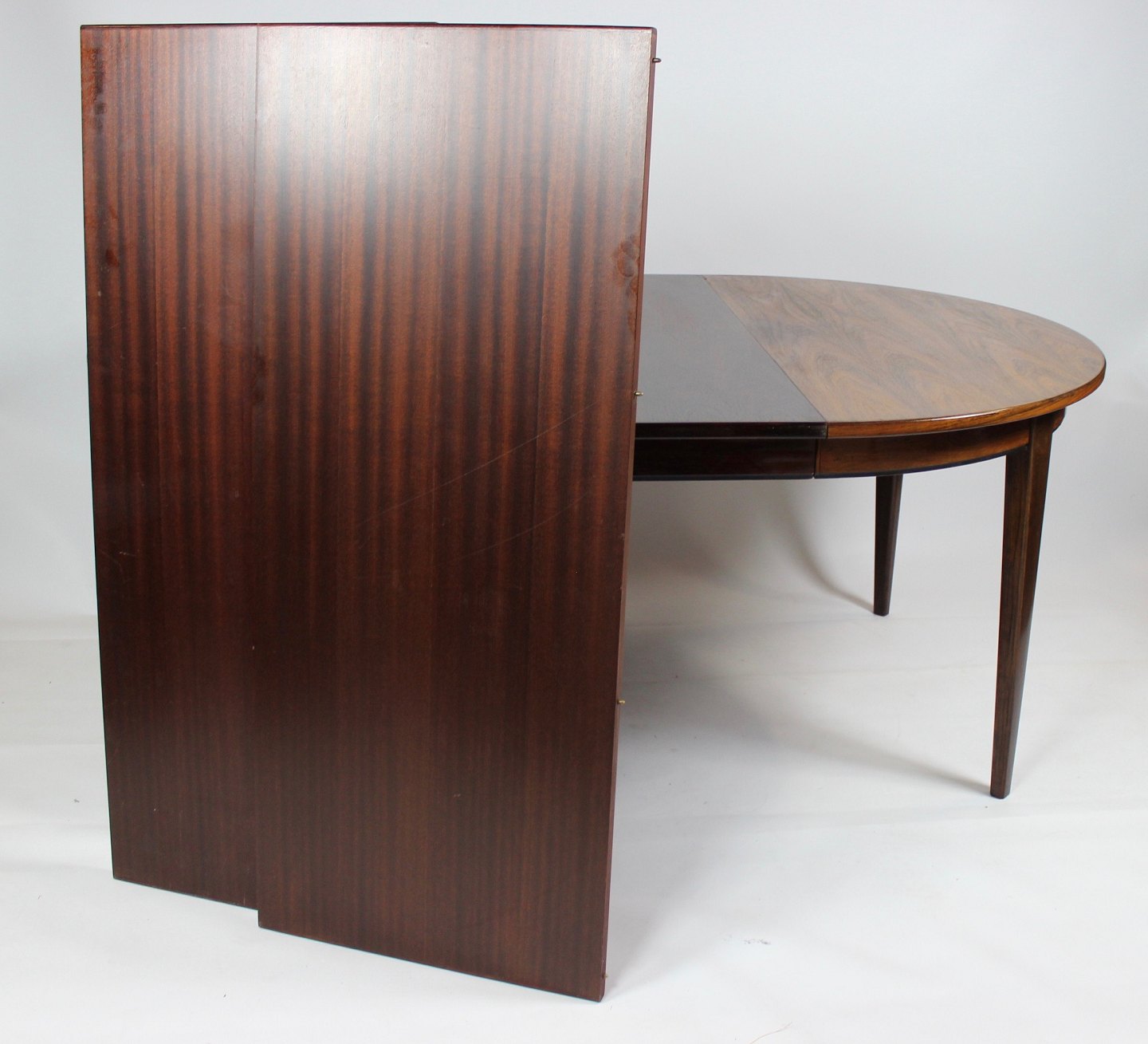 Dining table of rosewood with three extension plates designed by Omann Junior in the 1960s.