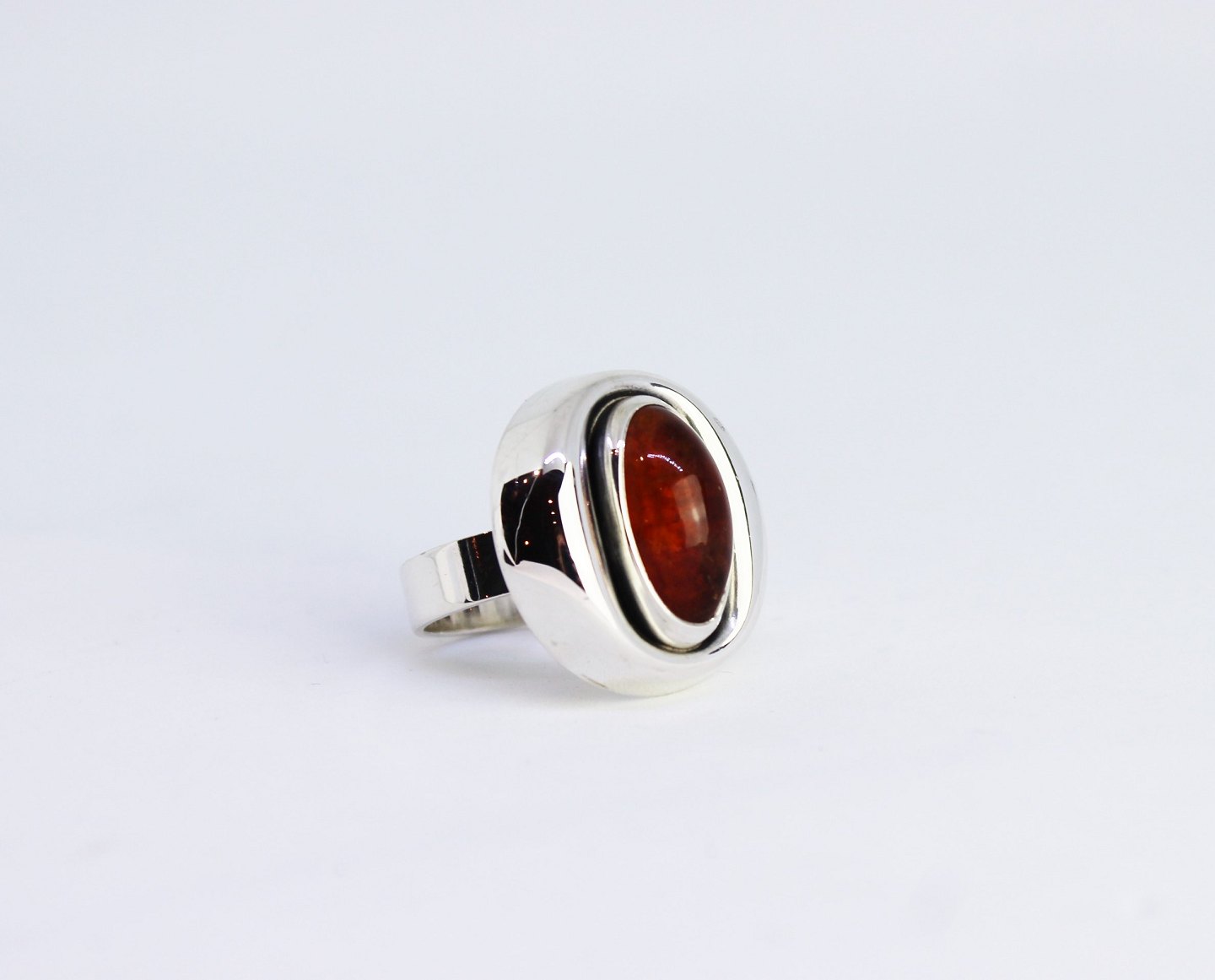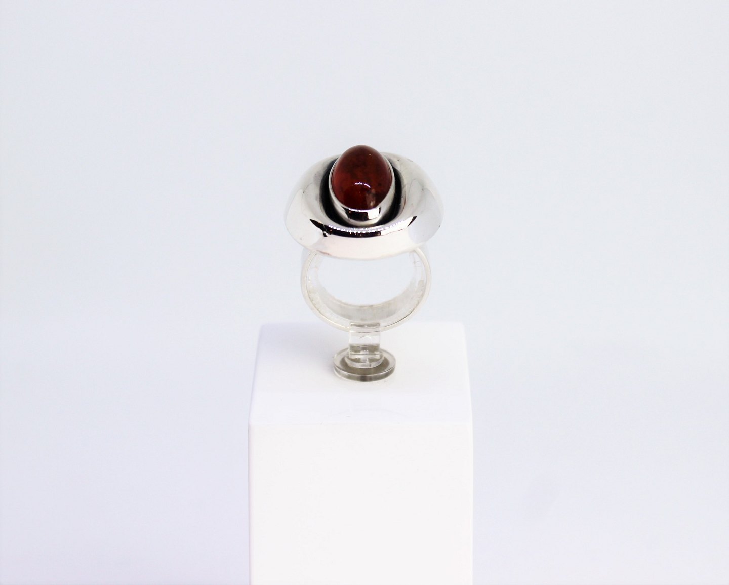 Ring of 925 sterling silver decorated with a piece of amber and stamped by N.E. From.