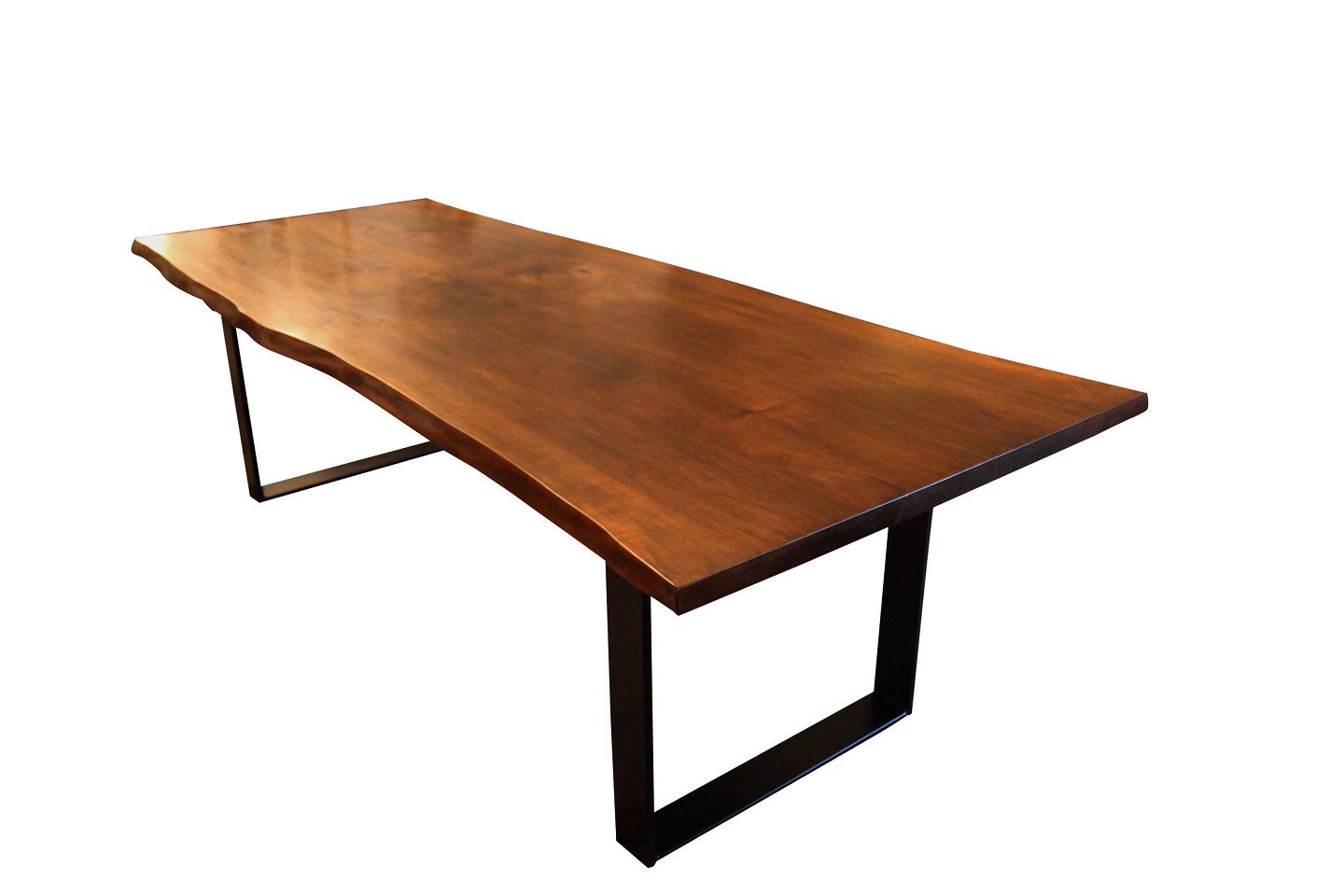 Please contact us for price informationPlank table of walnut and black metal frame, made of two planks with natural edges. The table is of our own design and newly manufactured.