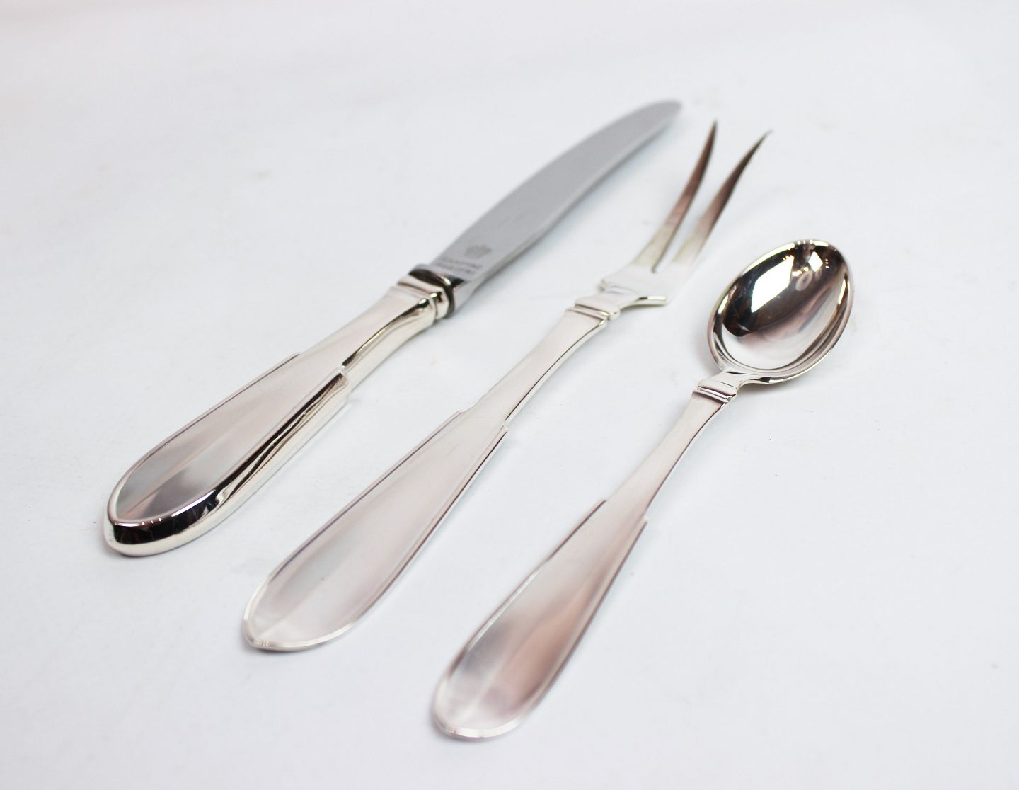 Frugtkniv, Pålægsgaffel & Teske i Arvesølv nr. 1 - Hans Hansen.
