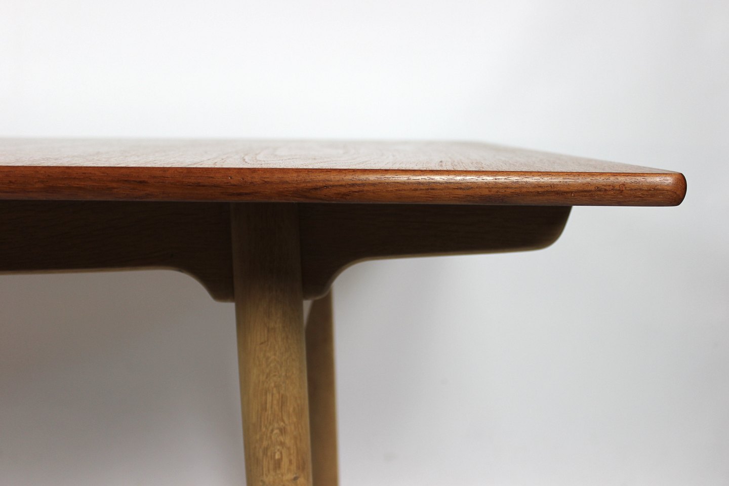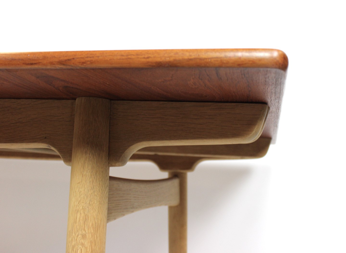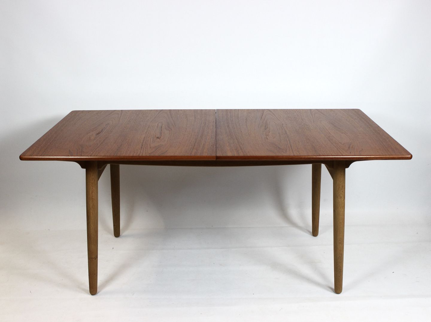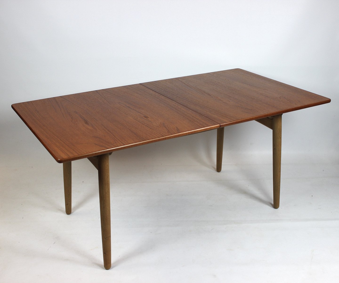 SoldDining table in teak and legs of aok, model AT-312, designed by Hans J. Wegner and manufactured by Andreas Tuck in the 1960s. The table is in great vintage condition and comes with two extension plates.
