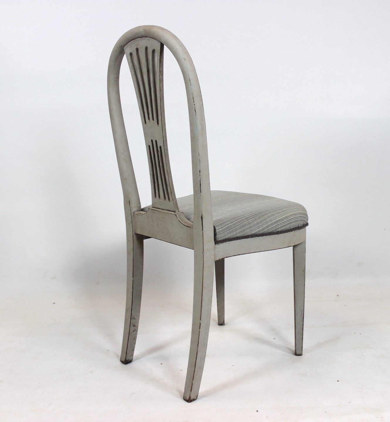 Grå malet gustaviansk møbelsæt bestående af 8 spisestuestole. Alle dele er i flot antik stand.