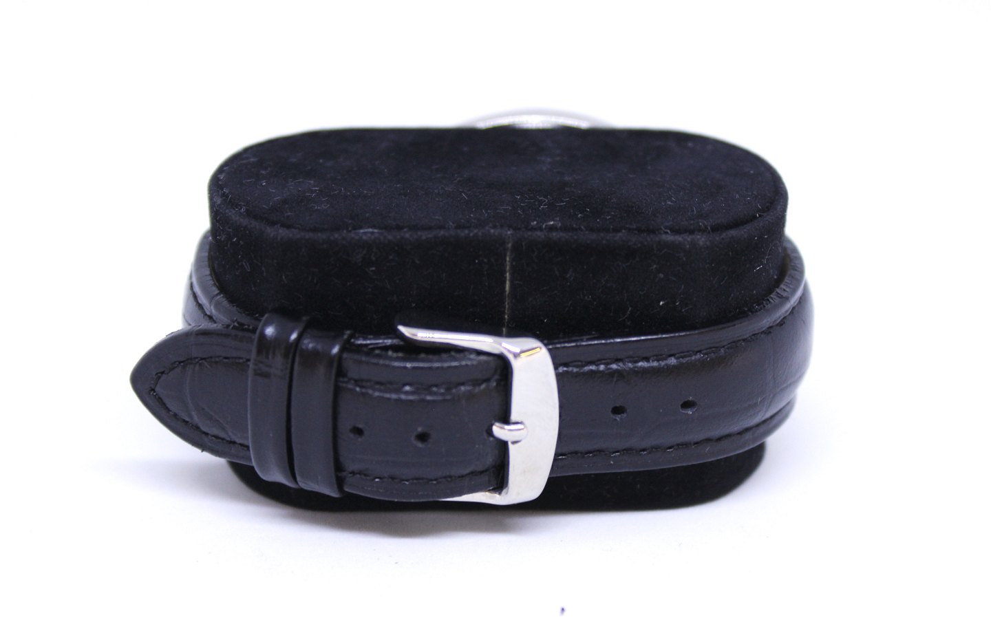 SoldOmega Quartz Seamaster wrist watch, swiss made and with date. The watch is with a black leather strap and in great condition.