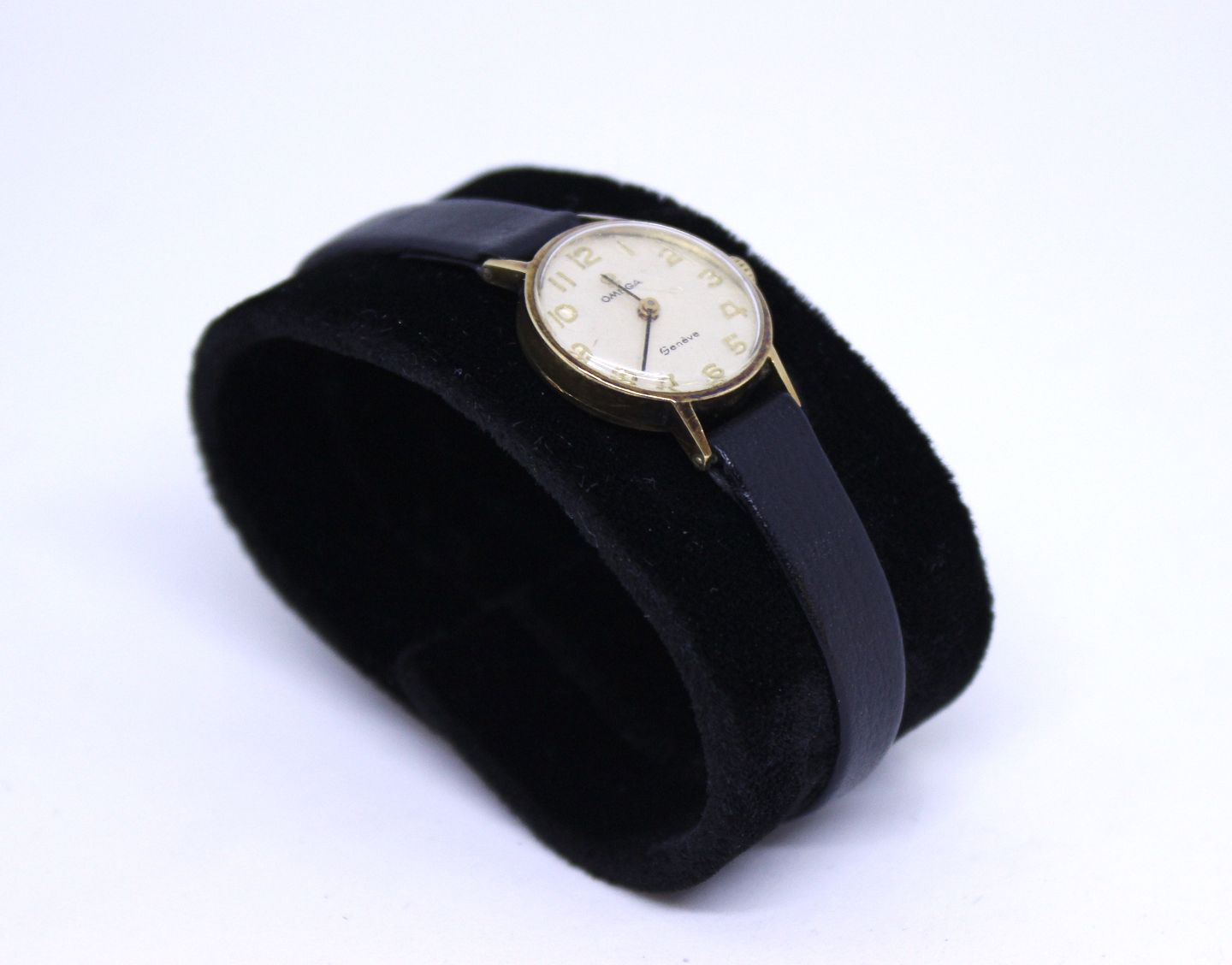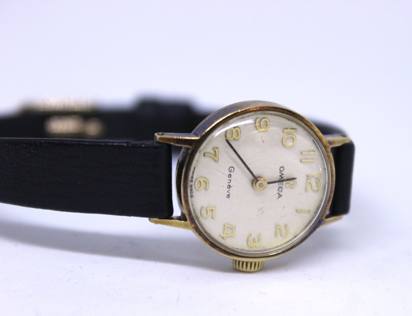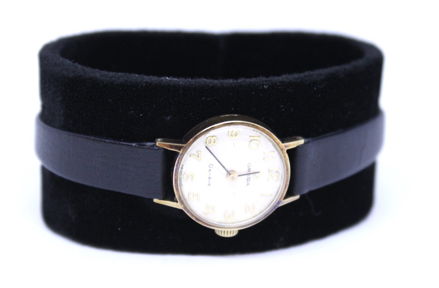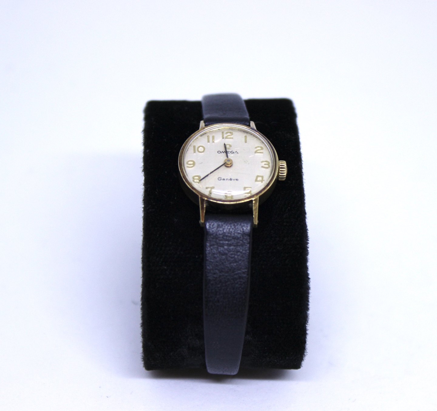 SolgtOmega Genéve dame ur med schweizisk urværk og sort Hirsch læder rem. Uret er i flot brugt stand og urkassen er af 14 kt. guld.