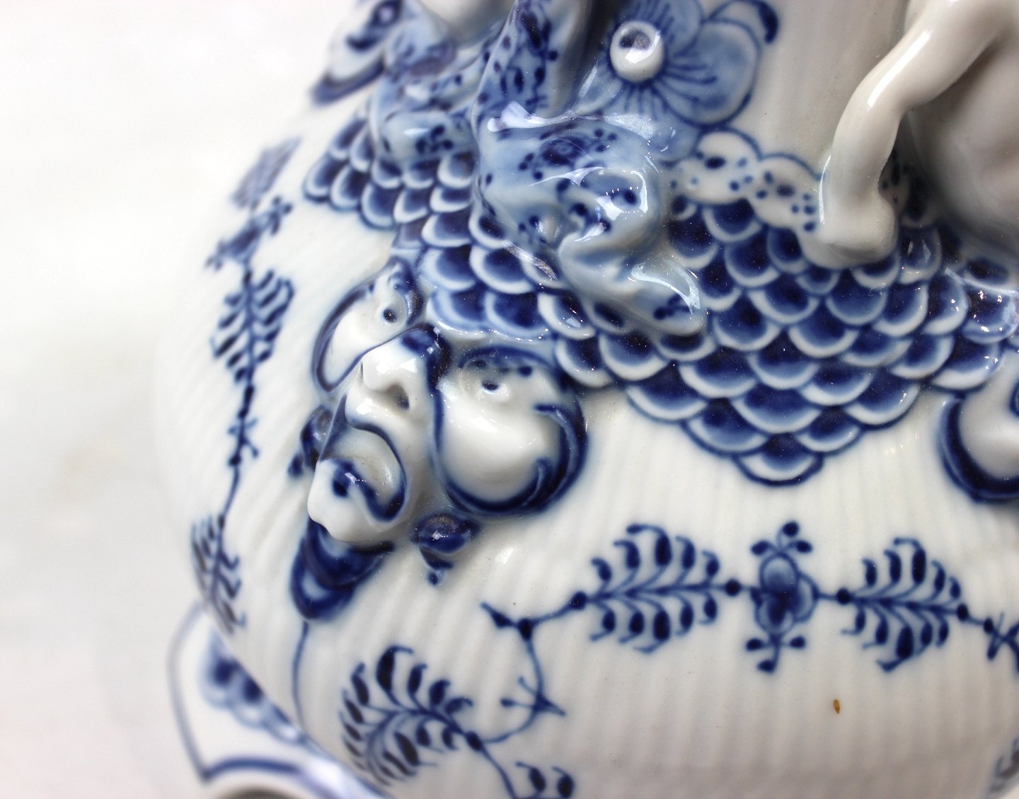 We buyThis five-armed candelabra, from Kgl. The Musselmalet Helblonde series is a unique example of Danish porcelain art. The candelabra is beautifully decorated with detailed figures and the classic mussel painted pattern, which has been a cornerstone of Royal Copenhagen's range since 1775.
