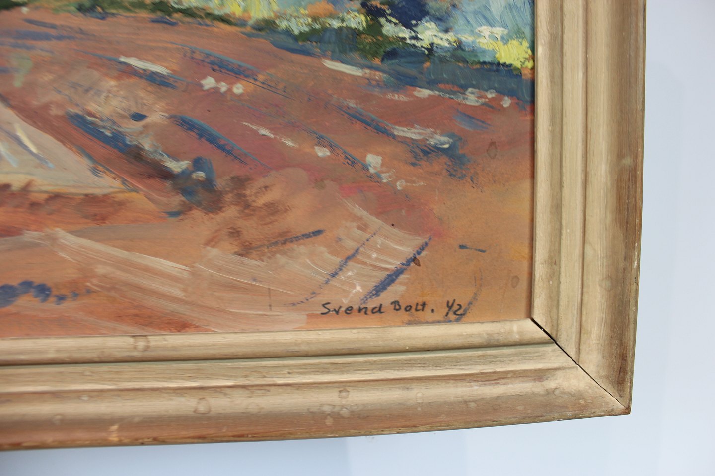 Oliemaleri med naturlandskab signeret af Svend Bolt i 1942. 38 x 76 cm.