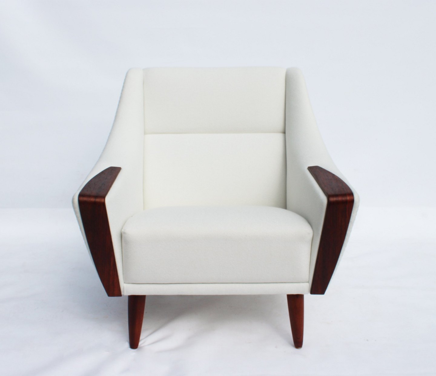 Armchair With Low Back - White Fabric - Rosewood - Danish Design - 1960