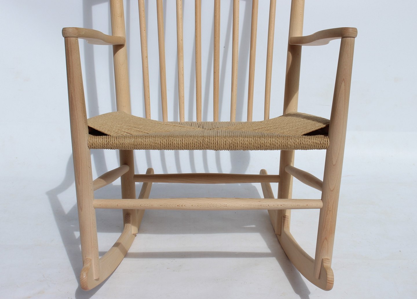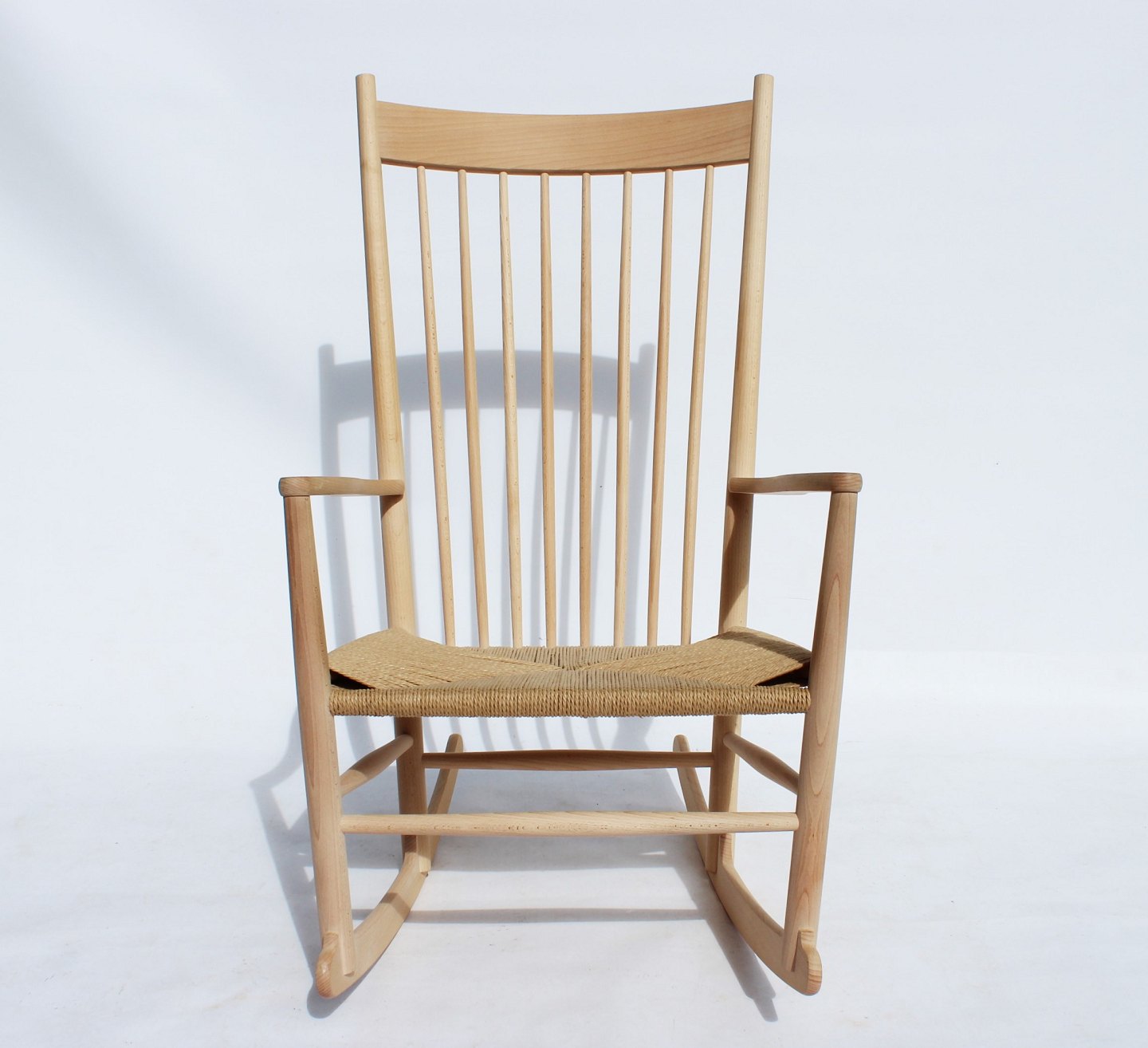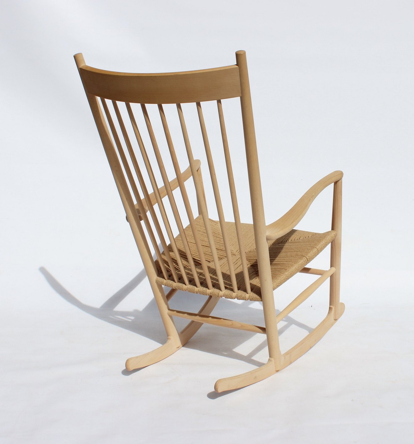 Rocking chair, model J16, of beech and paper cord, by Hans J. Wegner and Fredericia Furniture.