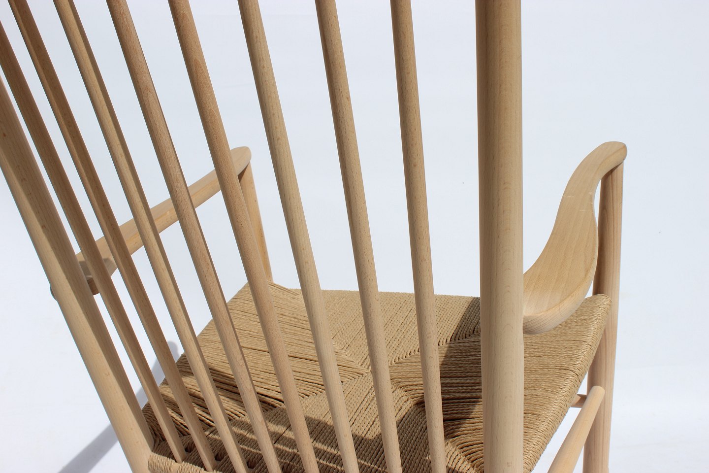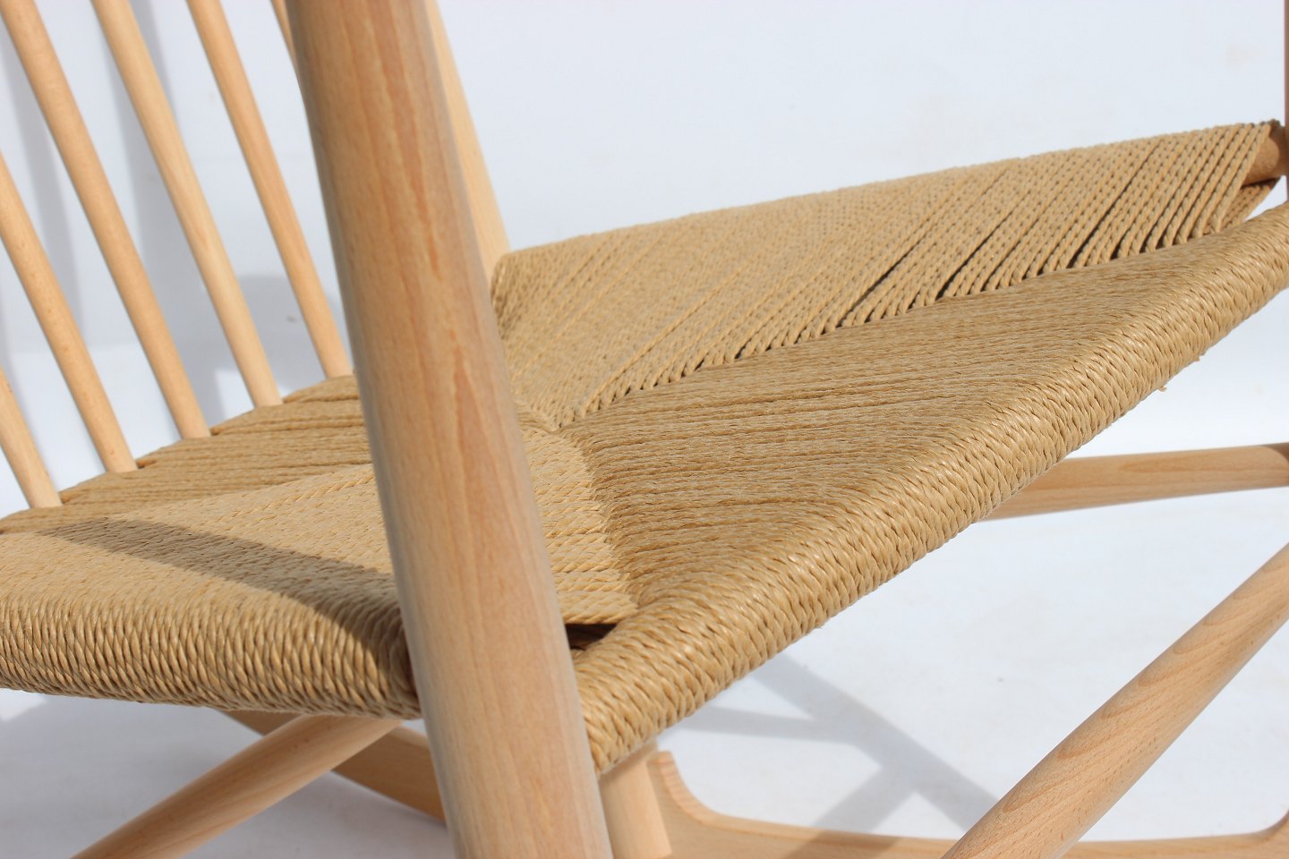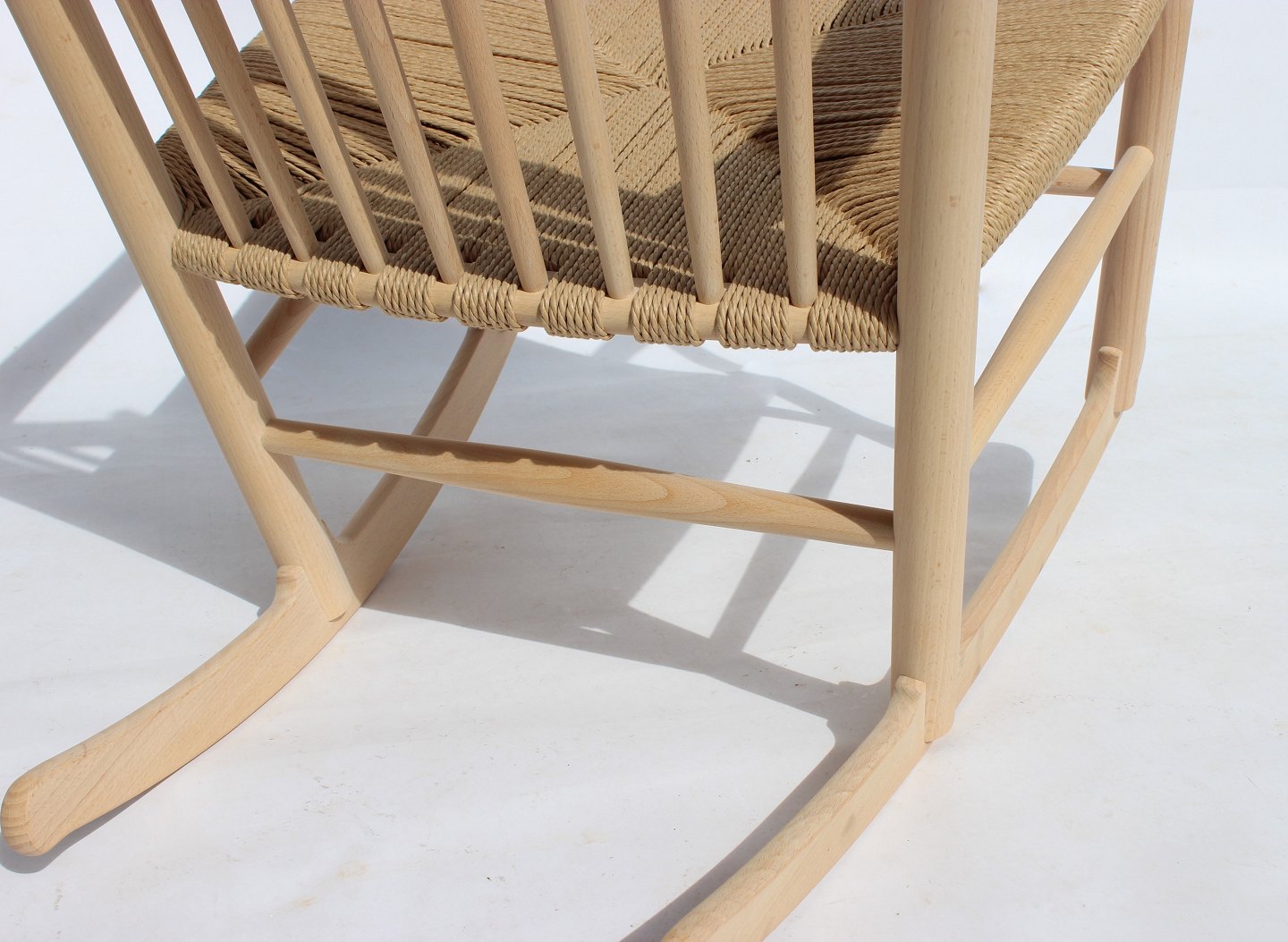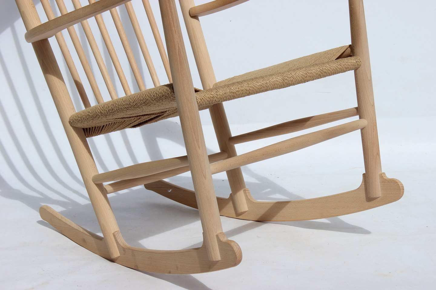 Rocking chair, model J16, of beech and paper cord, by Hans J. Wegner and Fredericia Furniture.