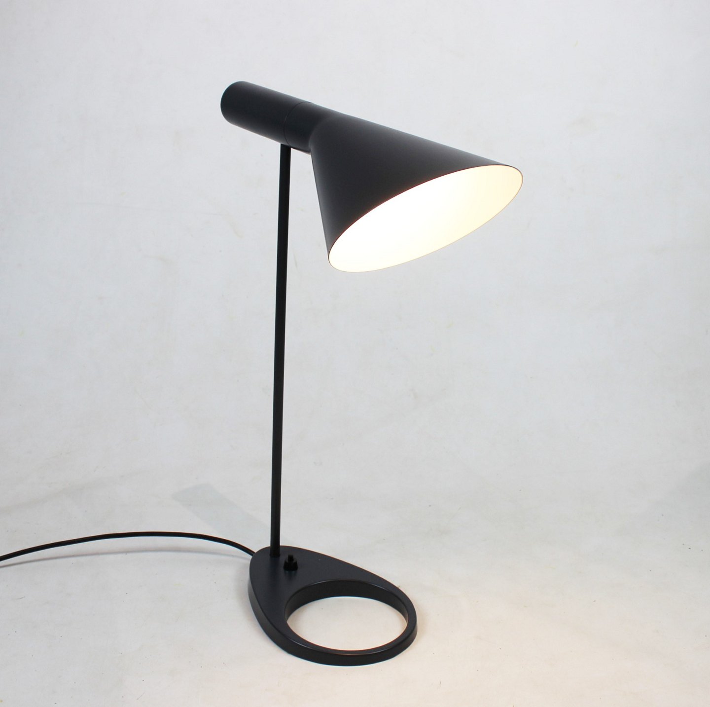 SolgtSort bordlampe designet af Arne Jacobsen i 1957 og fremstillet af Louis Poulsen. Lampen er en udstillingsmodel og er derfor i rigtig flot brugt stand.