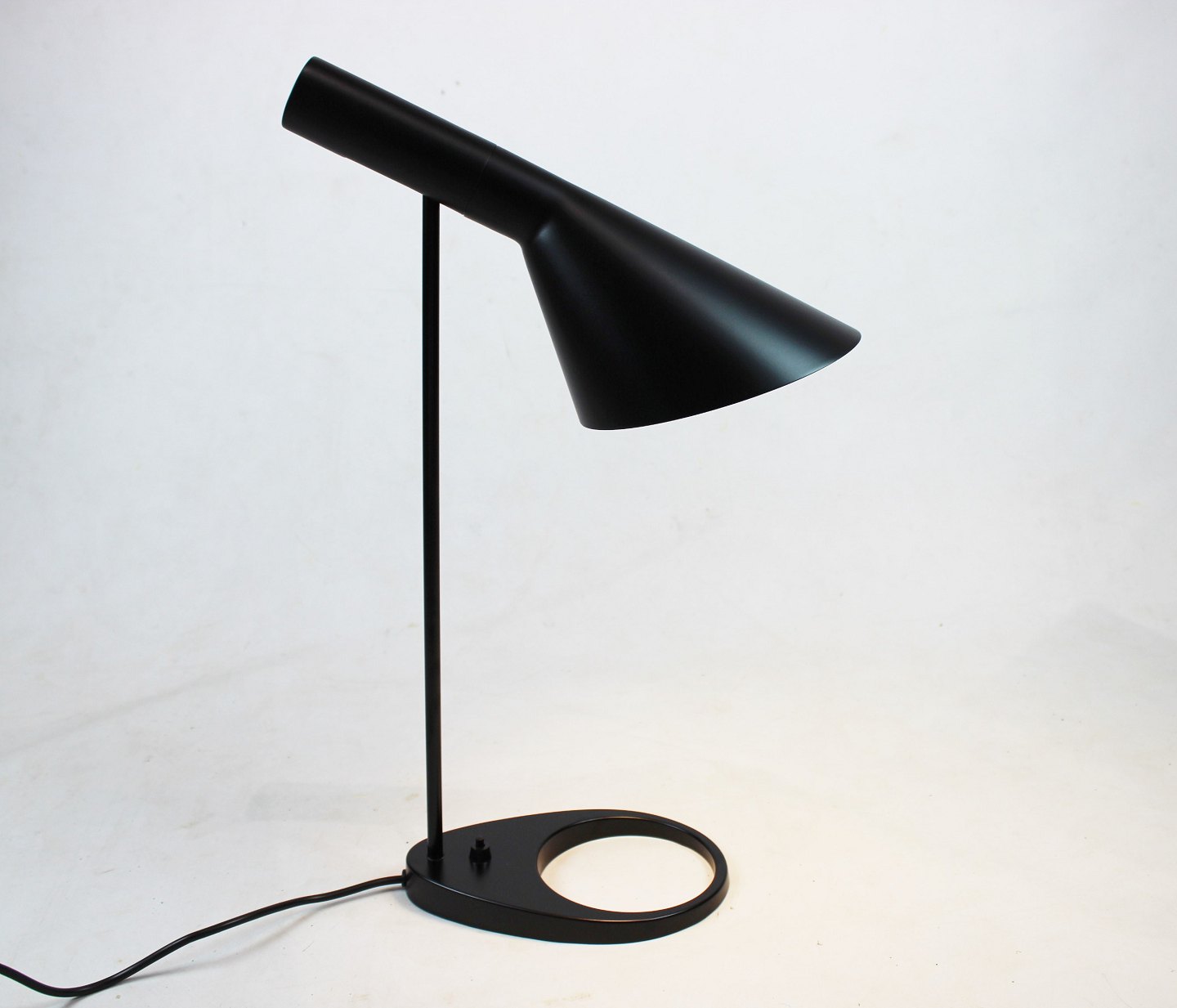 SoldDark grey table lamp designed by Arne Jacobsen in 1957 and manufactured by Louis Poulsen. The lamp is a show model and is therefore in great used condition.