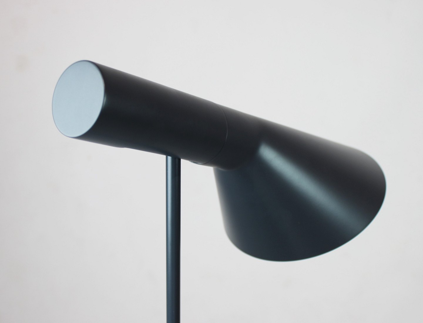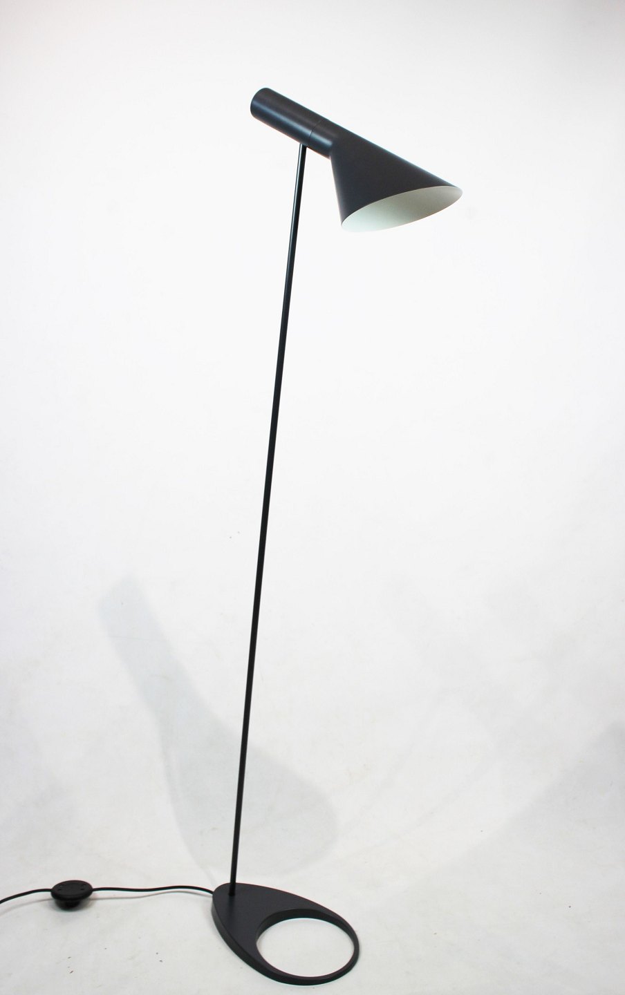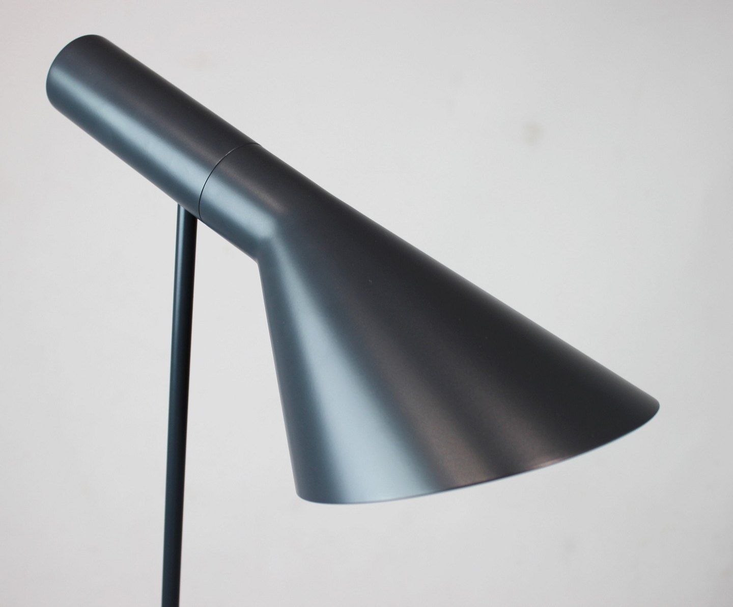 Dark grey floor lamp desgined by Arne Jacobsen in 1957 and manufactured by Louis Poulsen. The lamp is a show model and is therefore in great used condition.