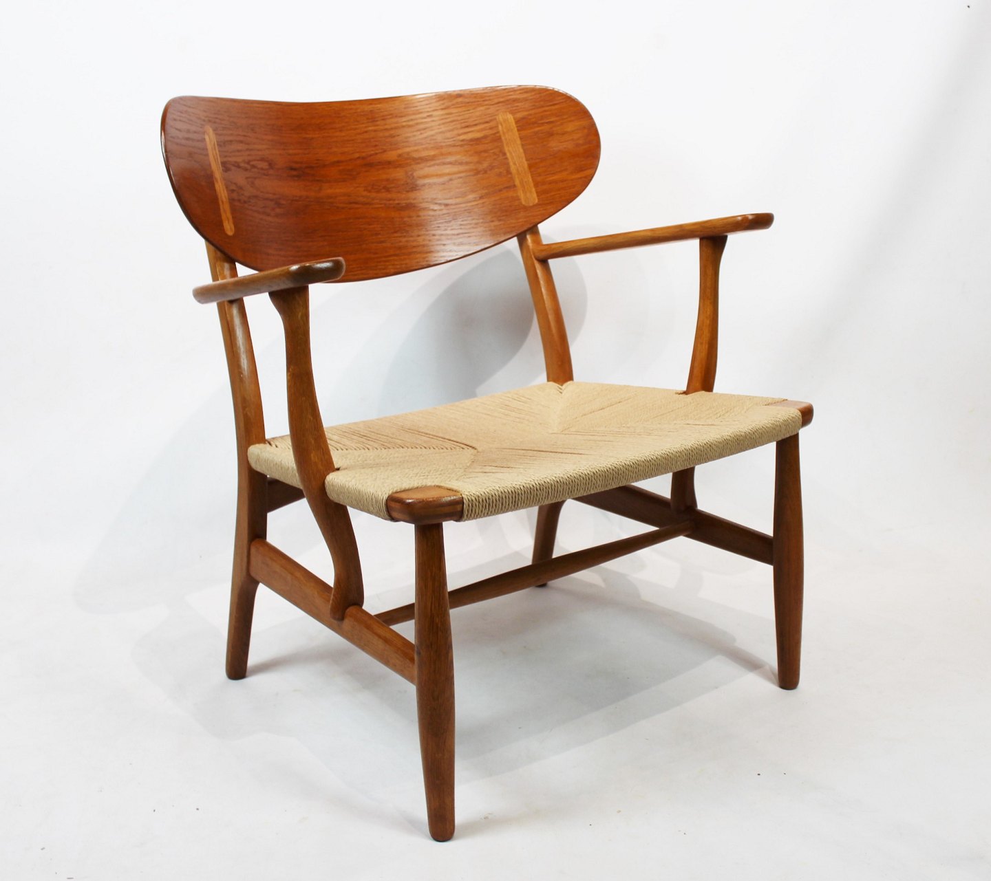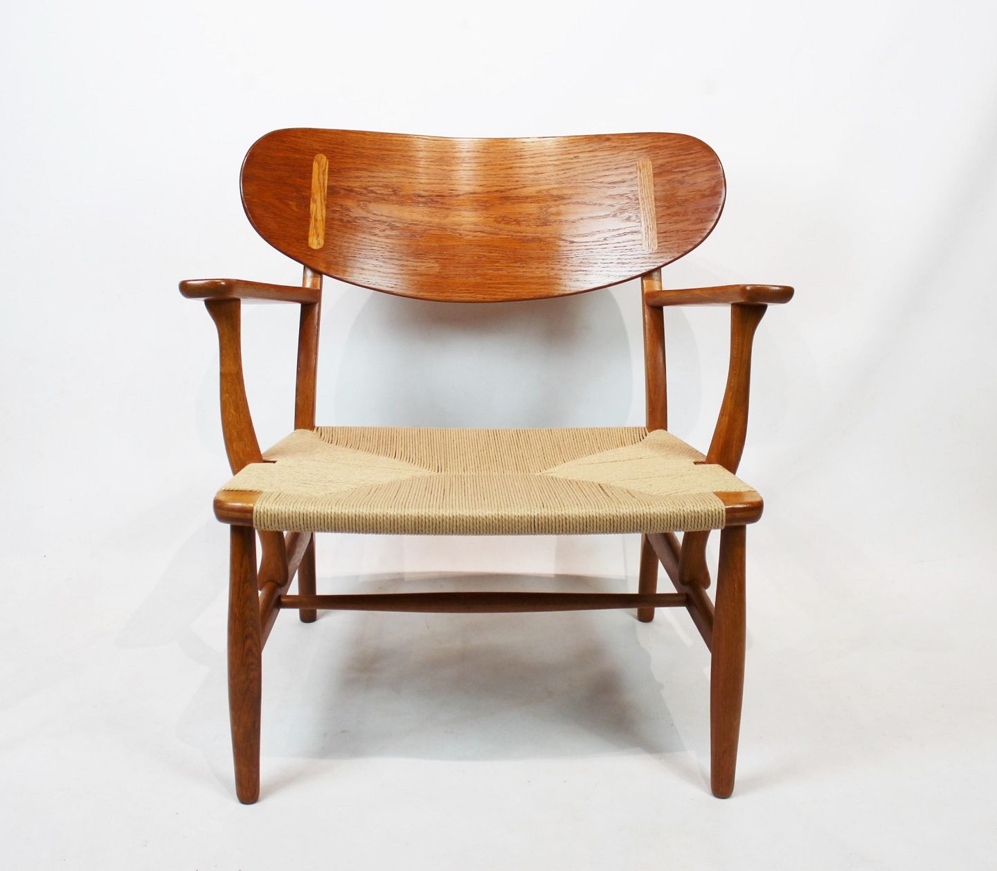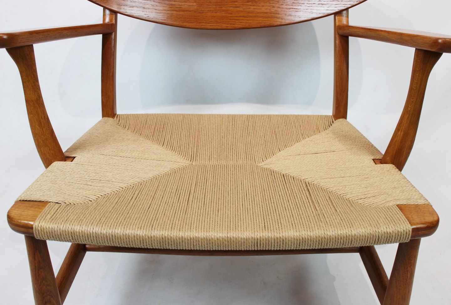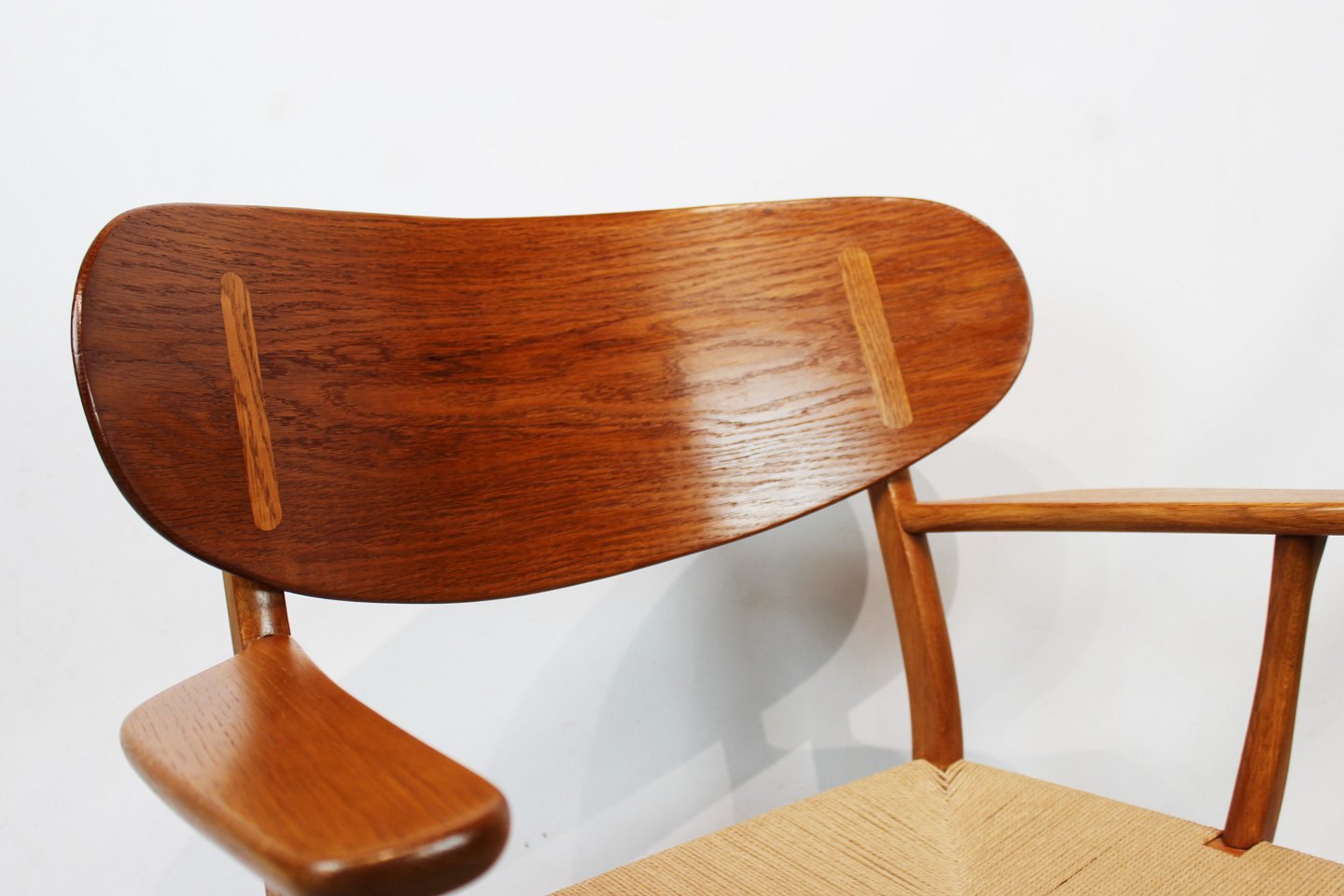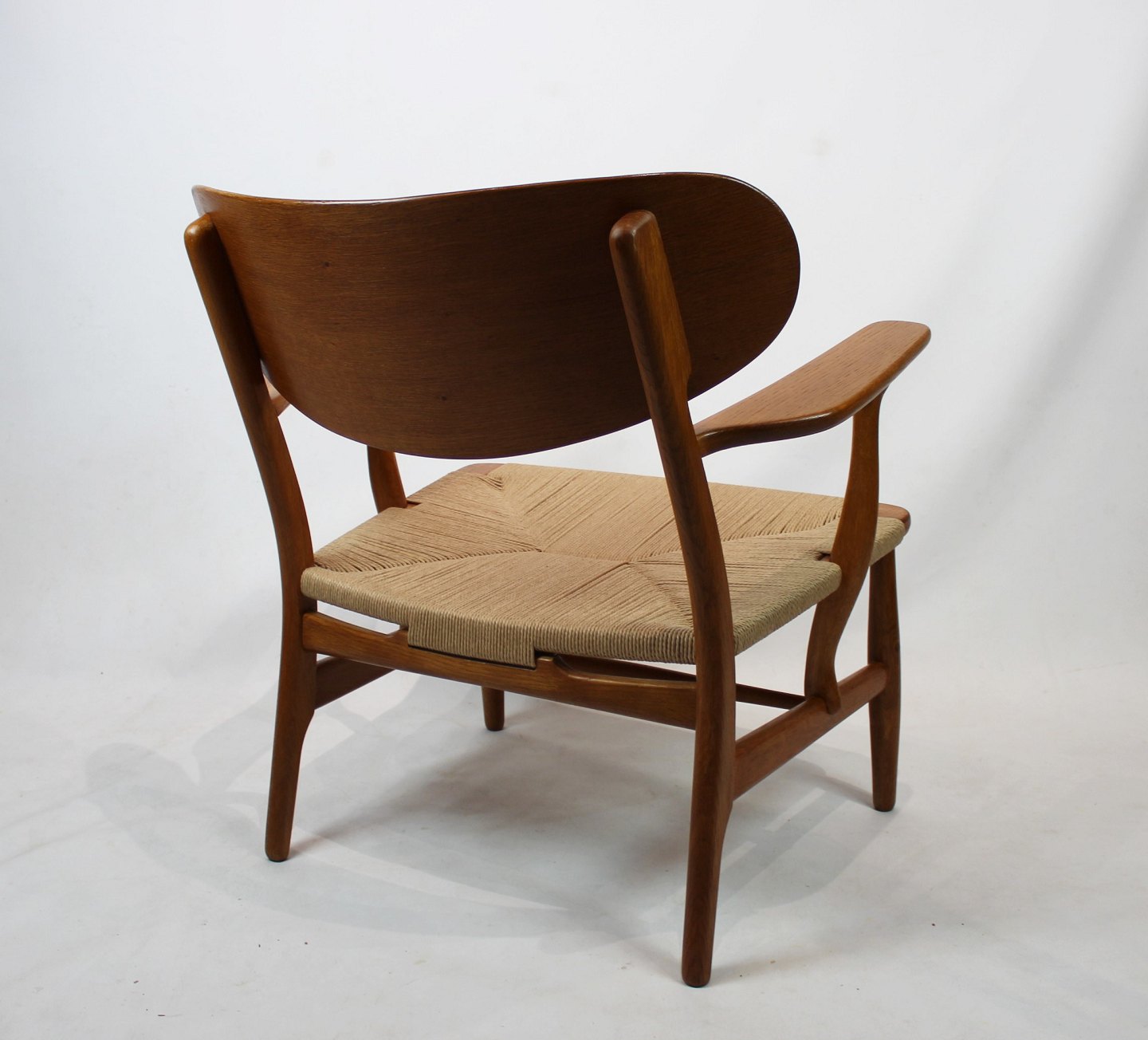 SoldArmchair, model CH22, of oak and papercord designed by Hans J. Wegner and manufactured by Carl Hansen & Son in the 1950s. The chair is in great original condition with new papercord.