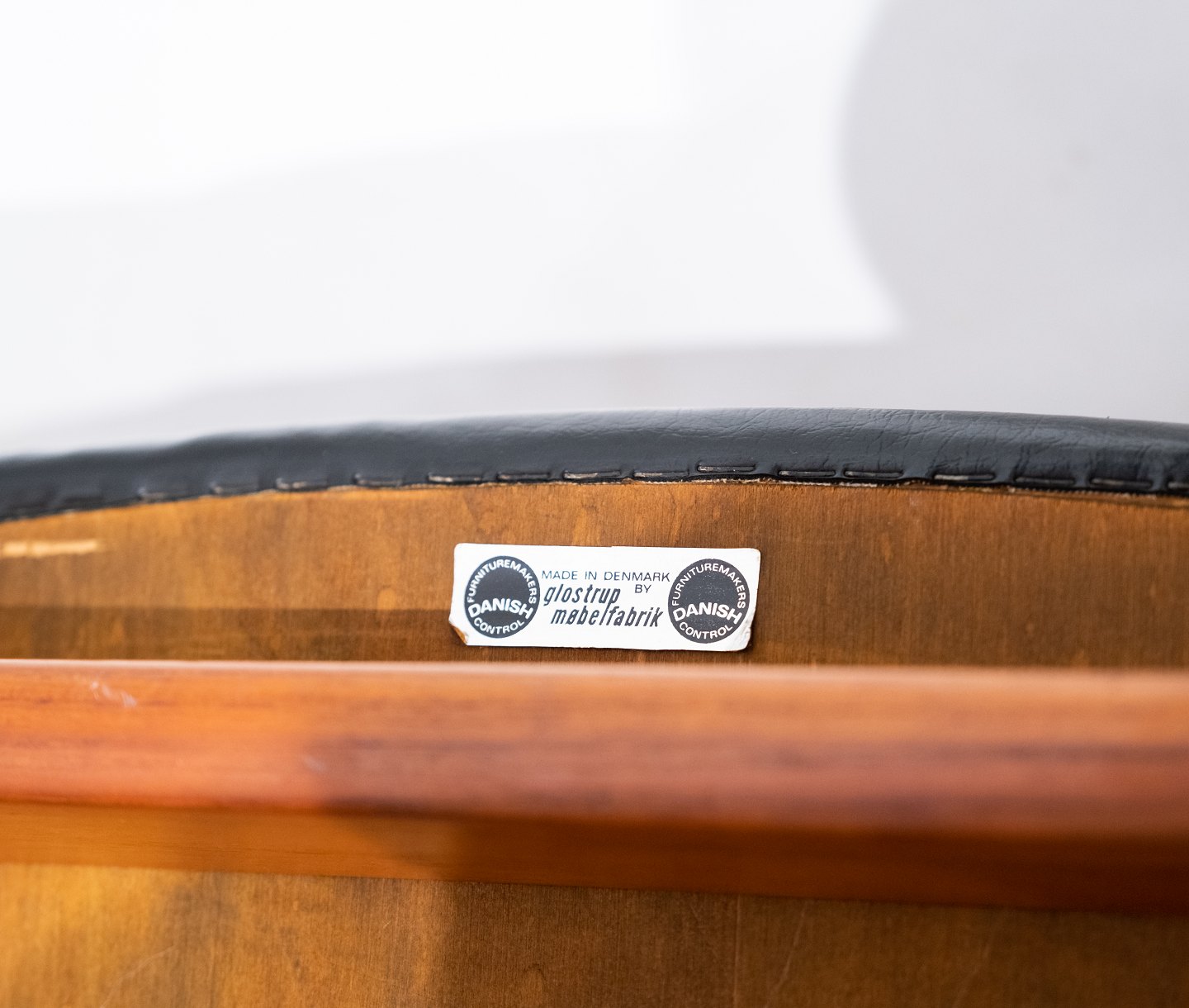 Armstol i teak og sort læder designet af Erik Kirkegaard og fremstillet af Glostrup Møbelfabrik i 1960erne.