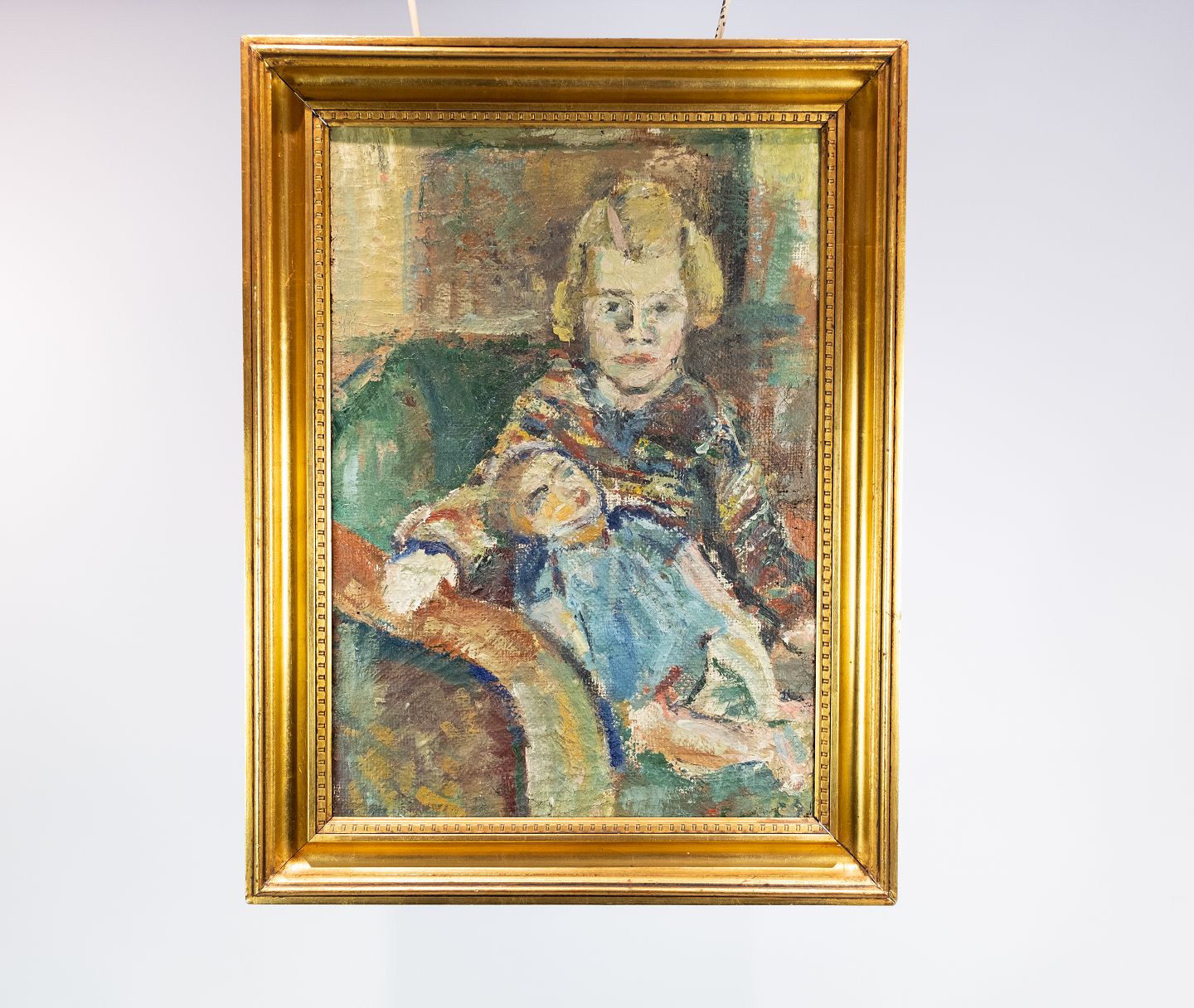 Oil painting, portrait of children, signed Klenø by Evgenij Klenø (1921-2005) from 1946.
