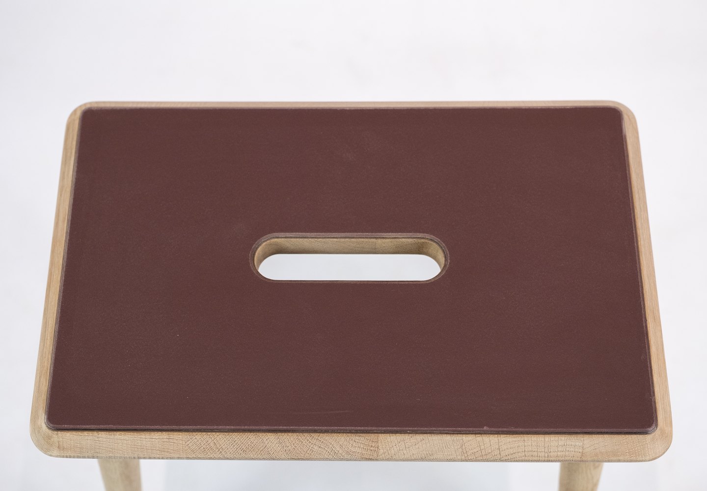 This stool with a brown laminate top and oak legs is a stylish and functional accessory for any home. Produced by Via Copenhagen, a Danish company known for their focus on quality and craftsmanship, this stool offers a perfect balance between aesthetics and functionality.