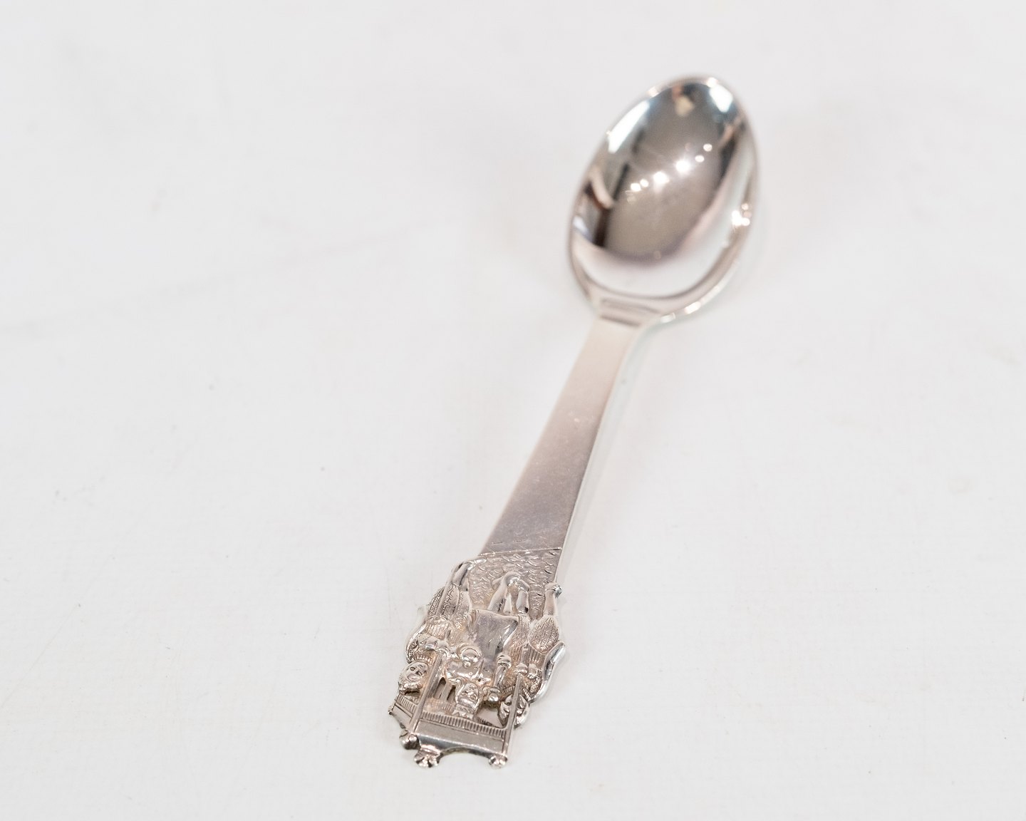 SoldTwo children's spoon, and knife and fork with the motif of H.C. Andersen's The Emperors New Clothes in hallmarked silver.