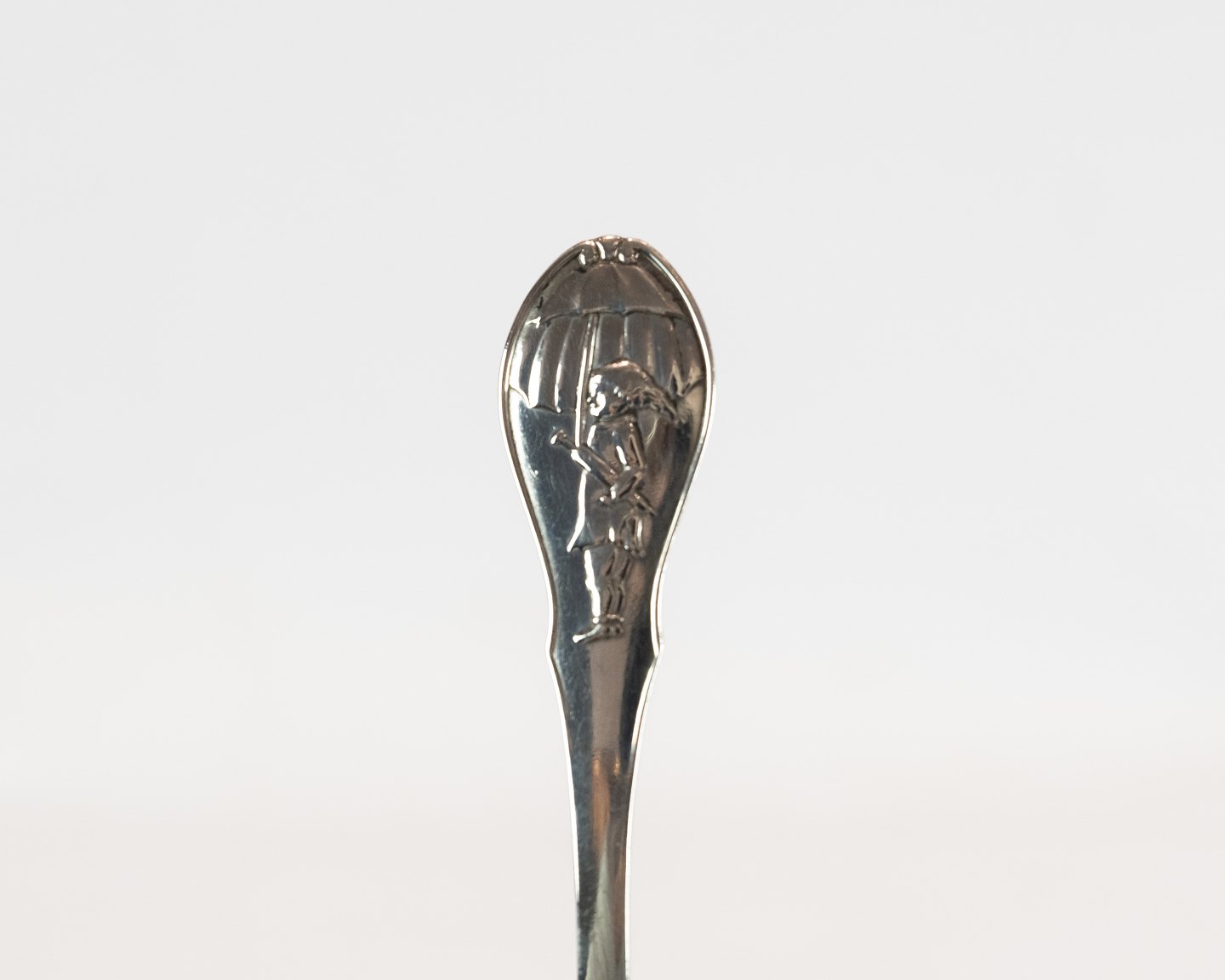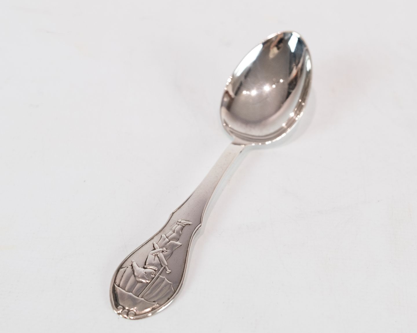 SoldChildren's spoon with motif of H.C. Andersen's Sandman in hallmarked silver.