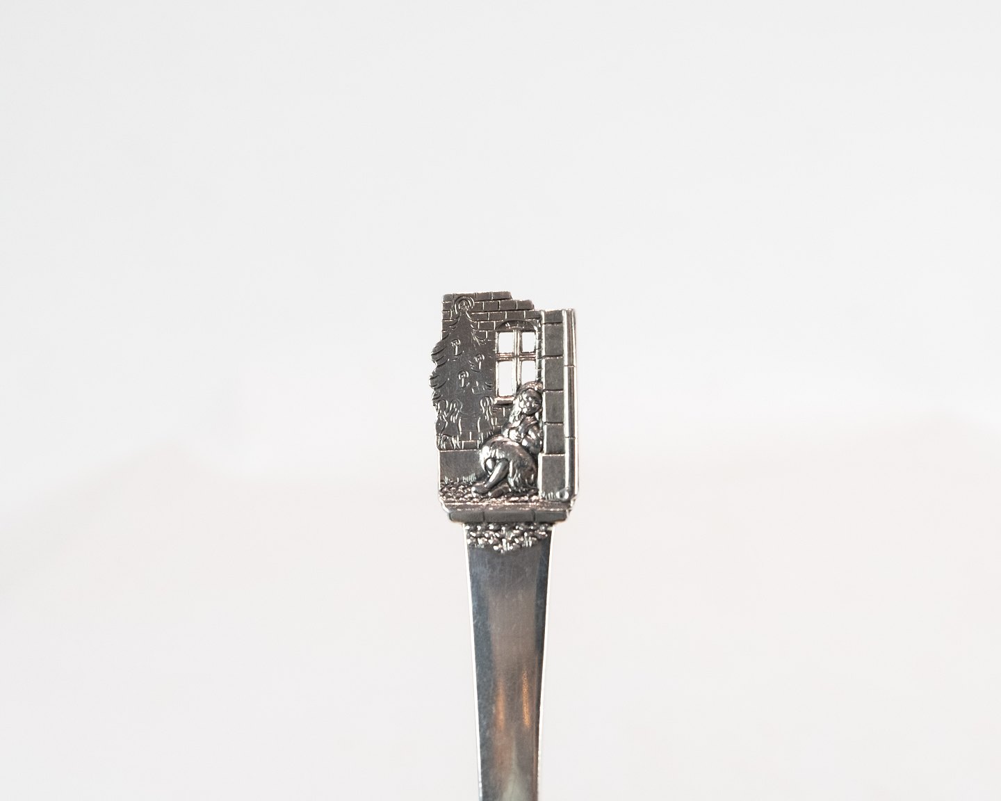 SoldChildren's spoon with motif of H.C. Andersen in hallmarked silver.