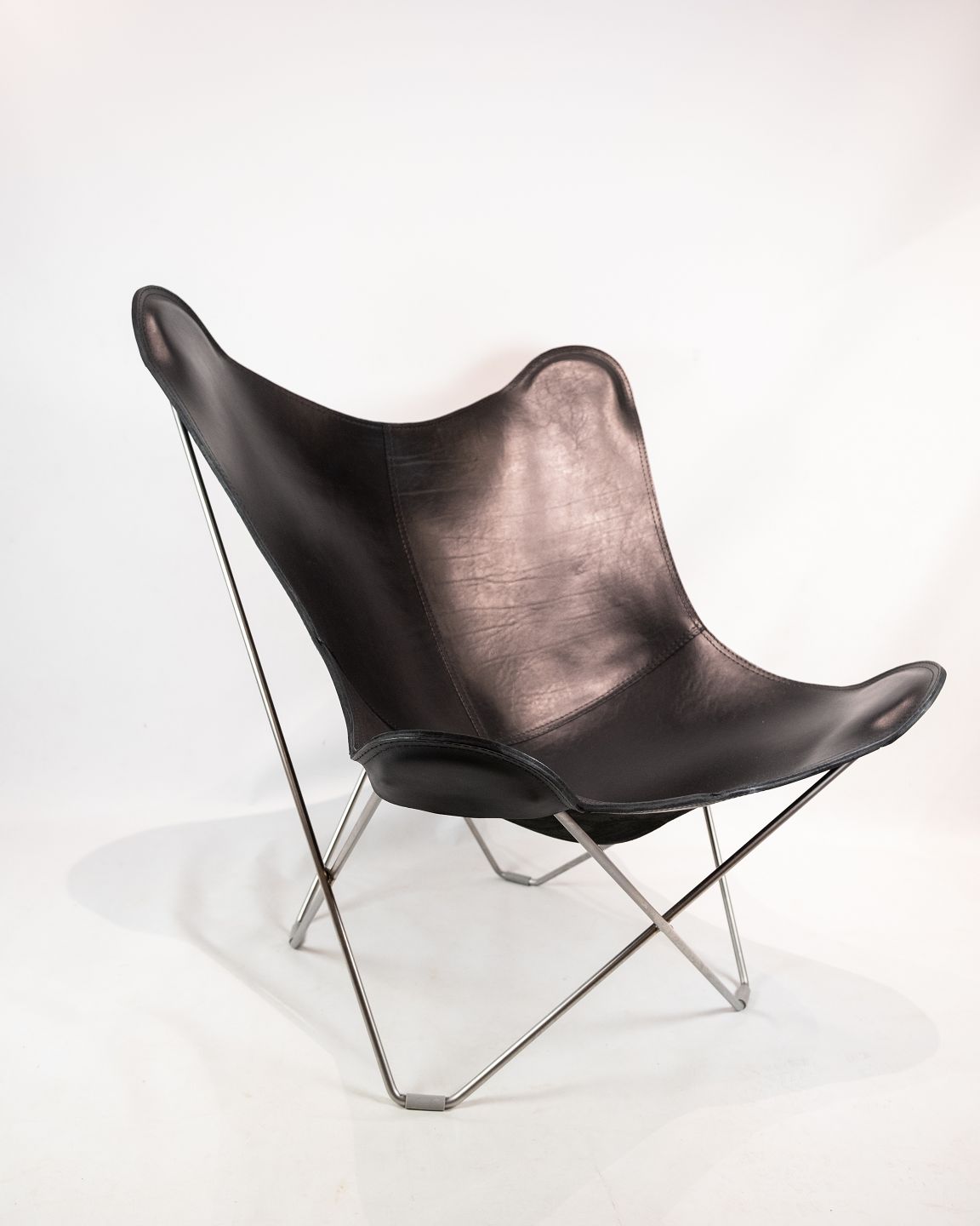 SoldButterfly easy chair, model Pampa Mariposa, of black elegance leather by Cuero Design. The chair is in great used condition.