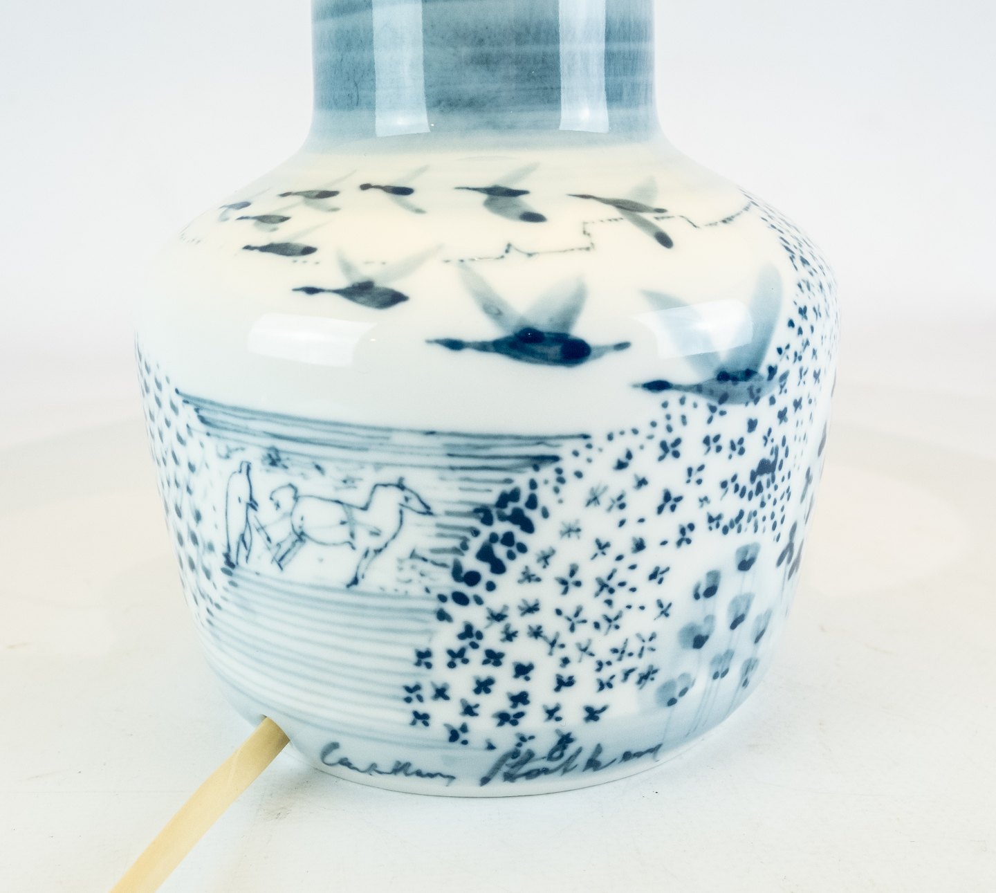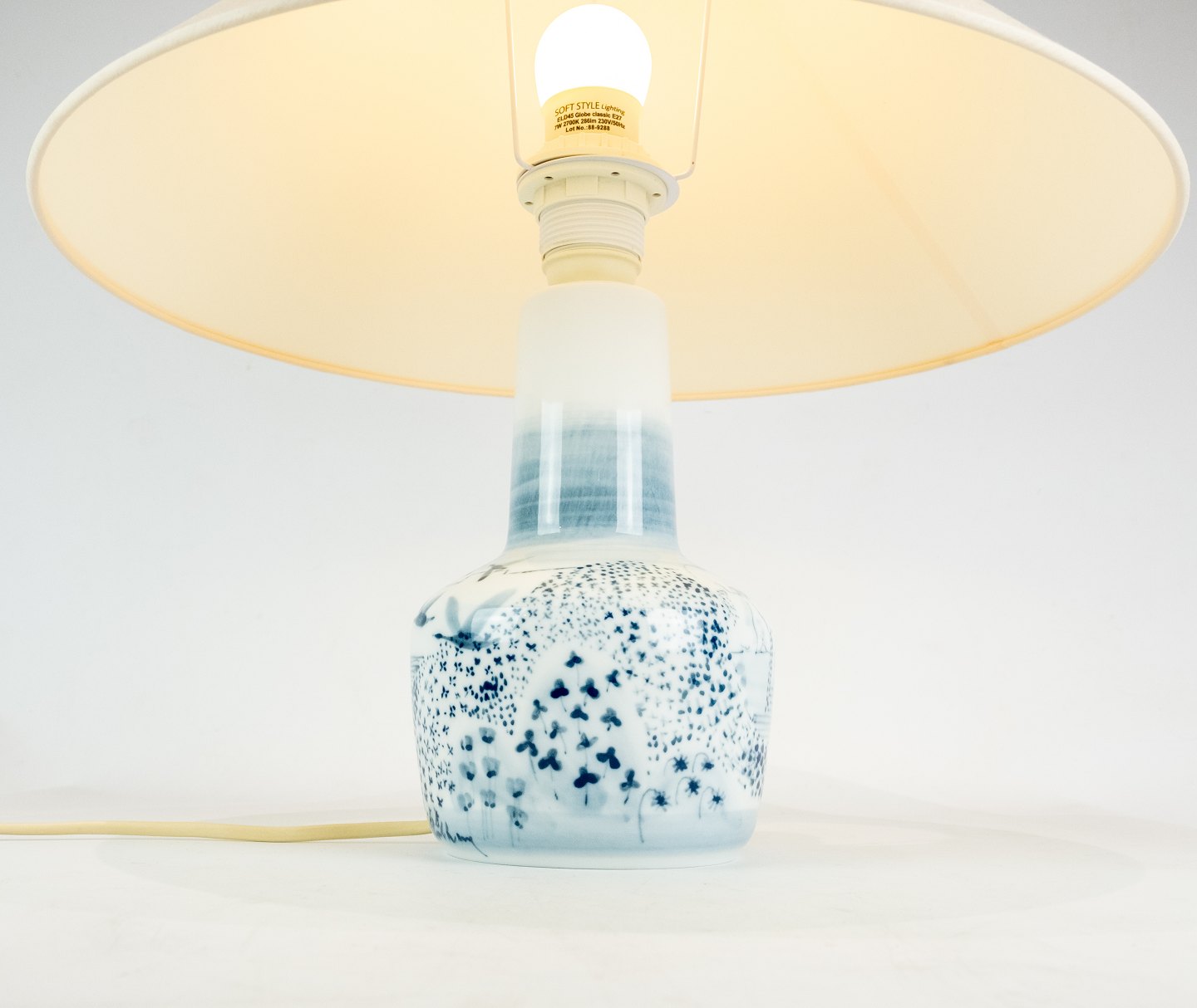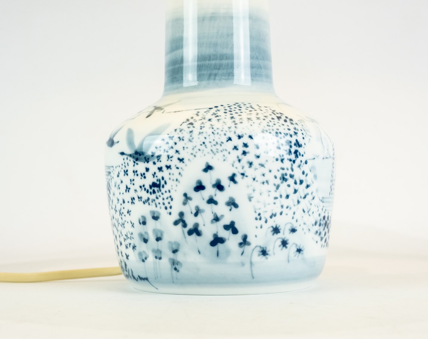 Bordlampe i blåmalet porcelæn af Bing og Grøndahl.
