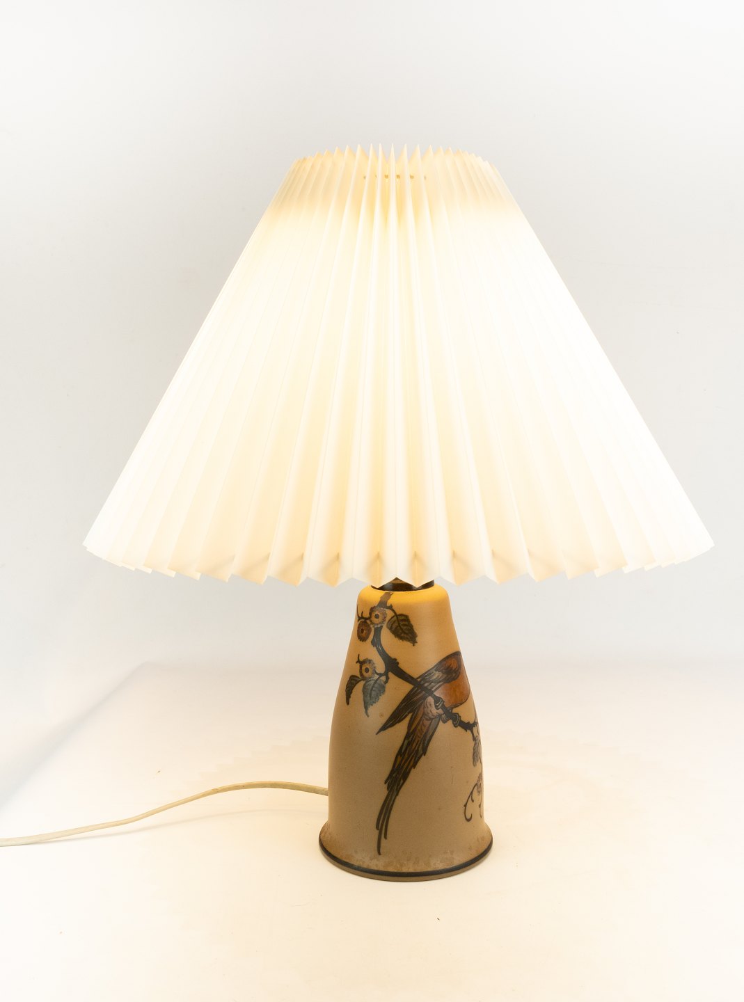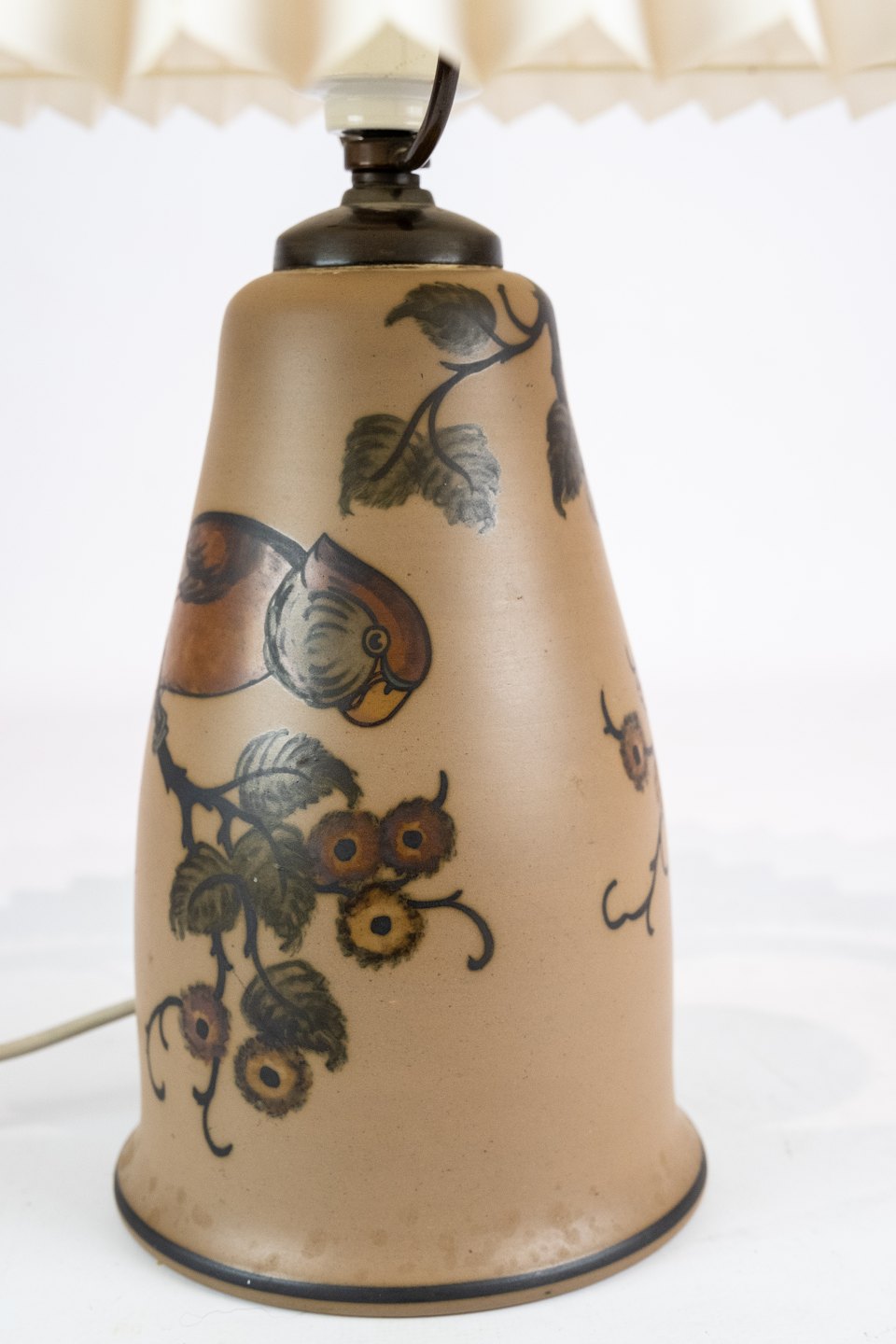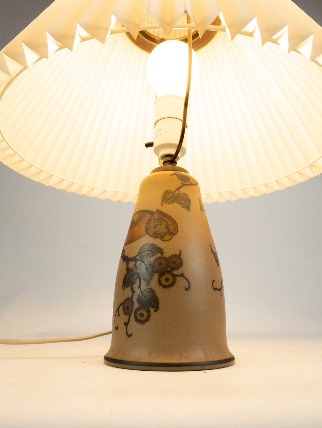 Tablelamp in brown colours, model MAG9, by Hjort Denmark. The shade is handfolded and handpainted of paper.