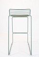 Et par barstole, model Hee, med metalstel i lakeret lyseblåt, produceret af HAY. Disse barstole er et perfekt eksempel på moderne skandinavisk design, der kombinerer funktionalitet med enkel elegance.