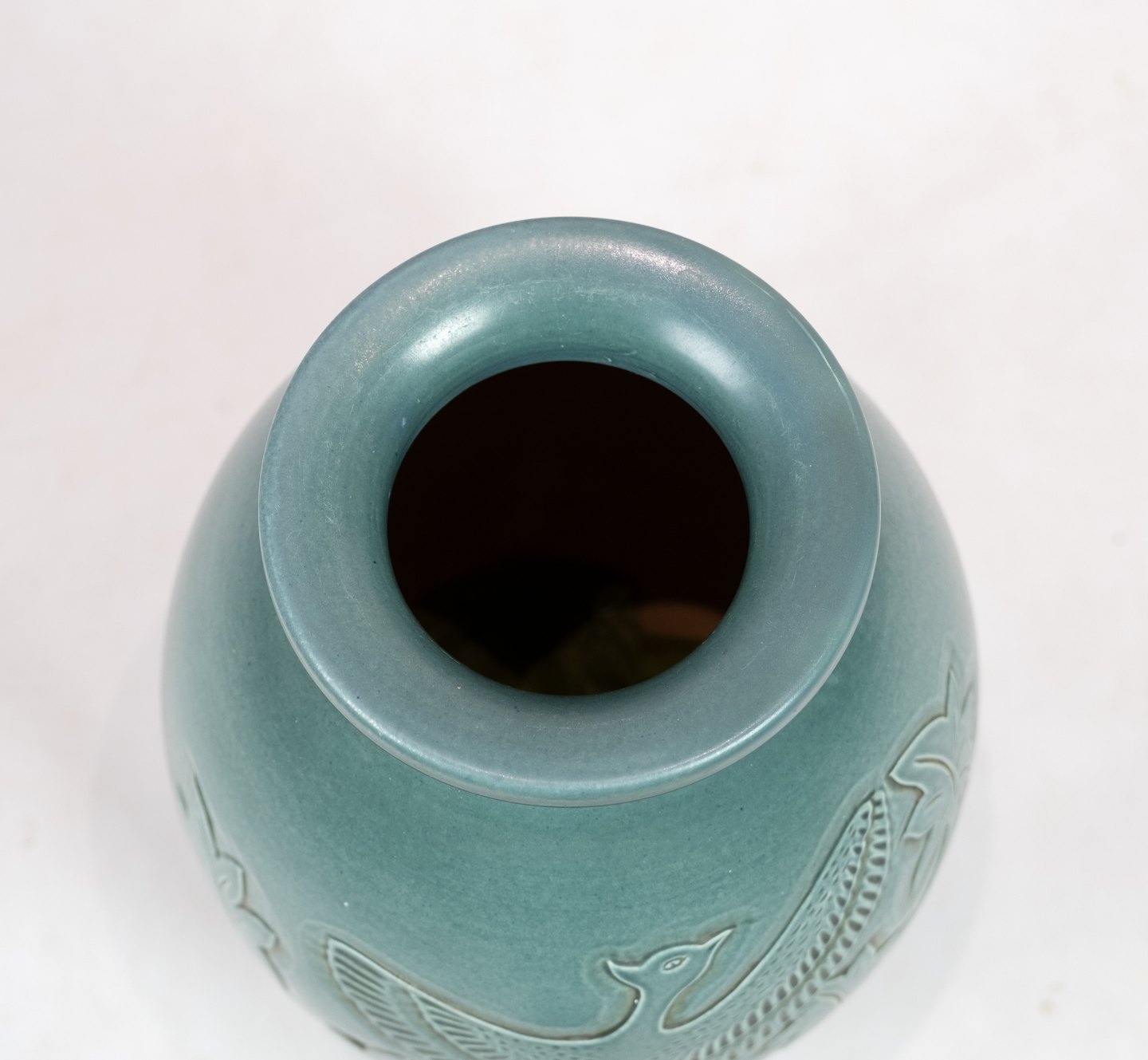 SoldA pair of ceramic floor vases with turqouise glaze by Knabstrup. Both vases are in great vintage condition.