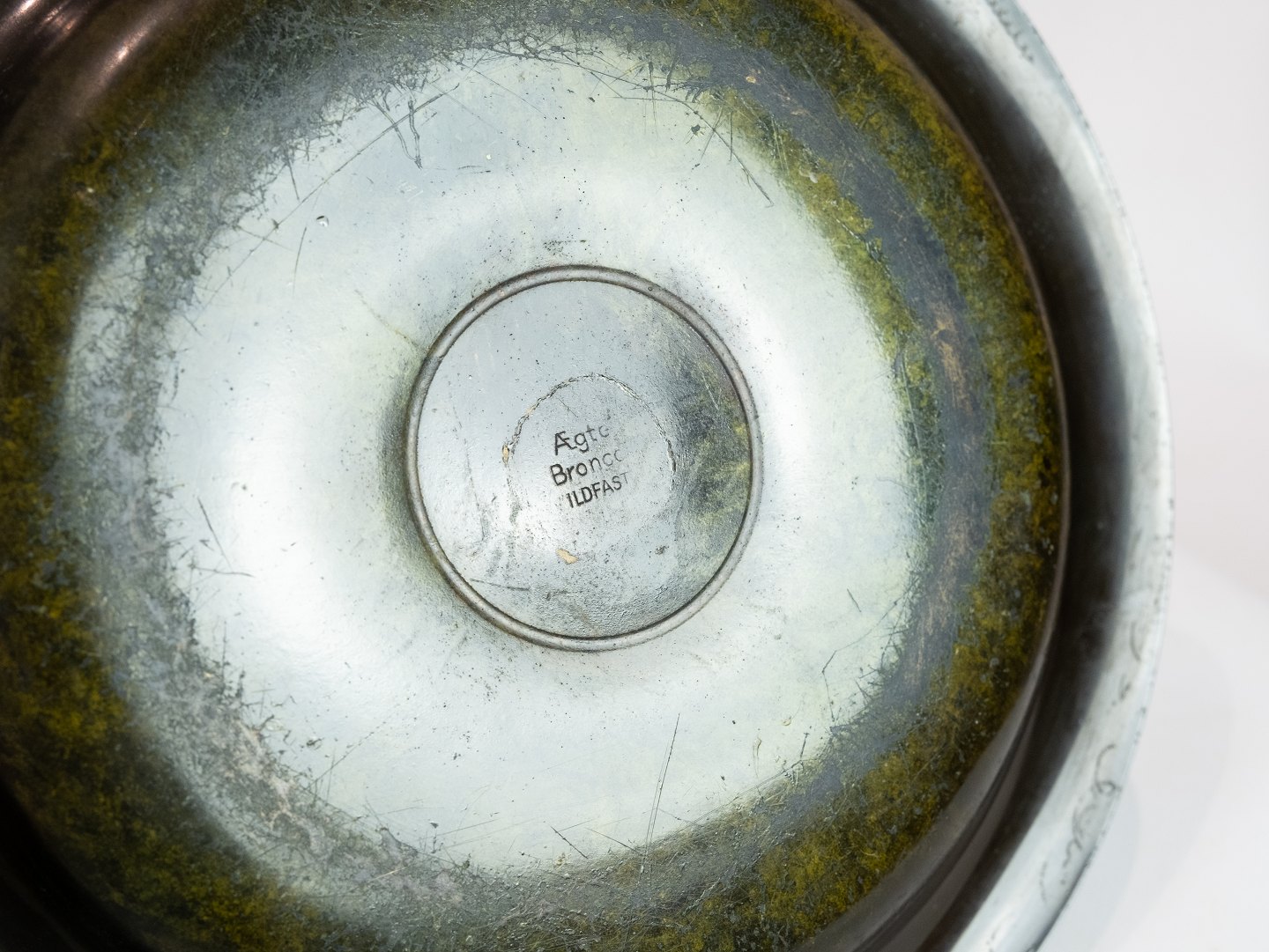 Round dish of bronze decorated with boy figure. The dish is in great vintage condition.