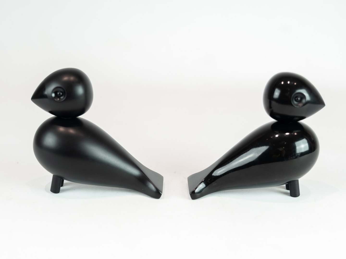 A pair of Kay Bojesen turtle doves in black painted wood.
