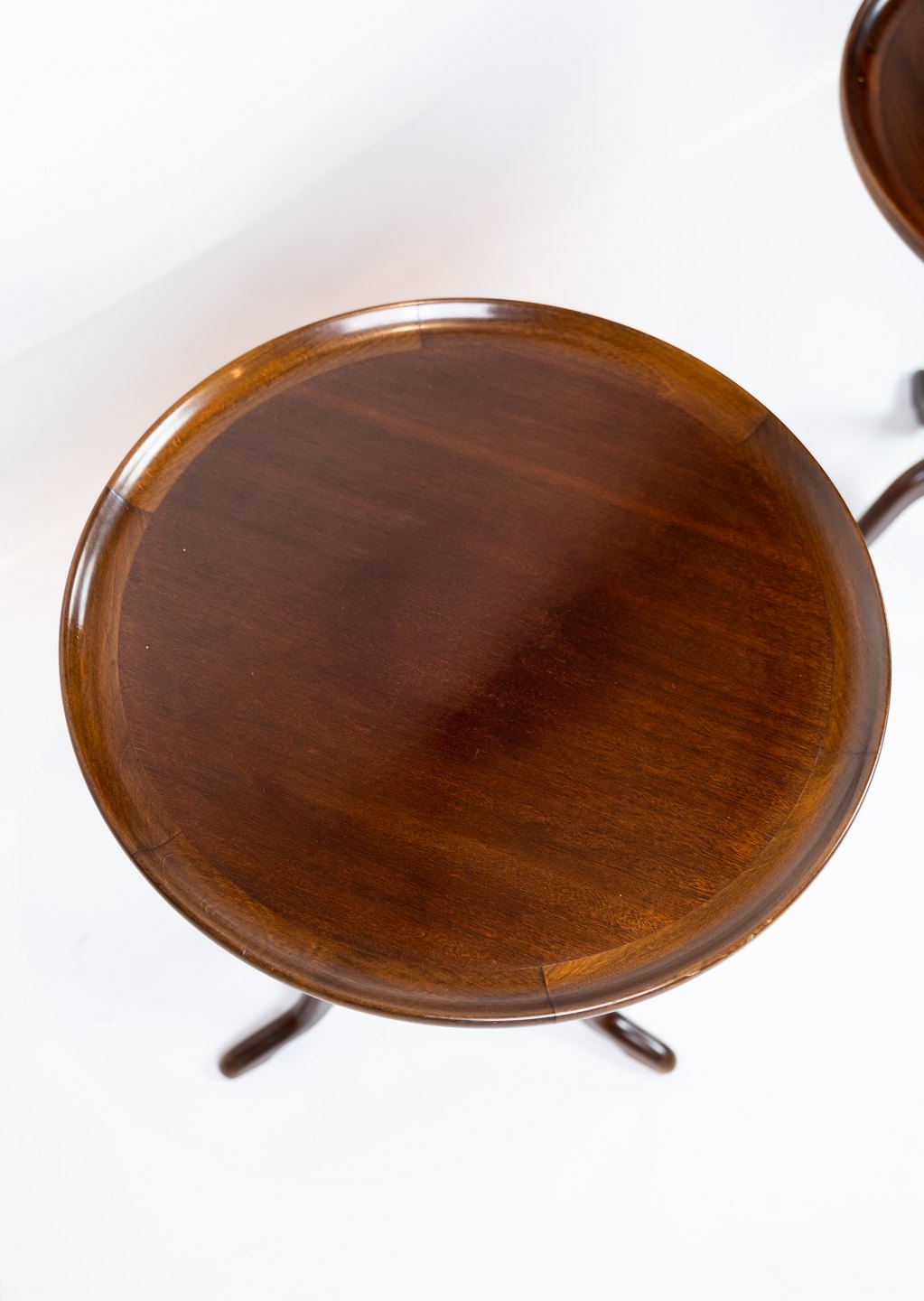 A pair of side tables in mahogany from the 1930s, both in great vintage condition.