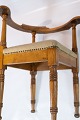 Armstol i poleret egetræ og polstret med lyst broderet stof fra 1910erne.