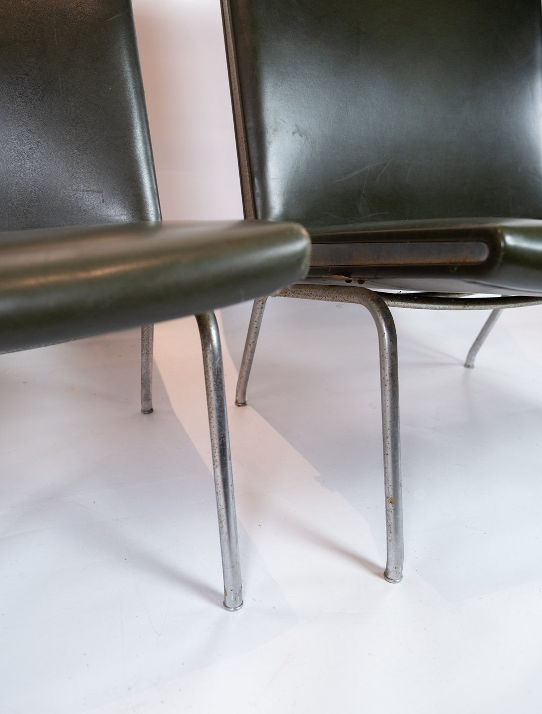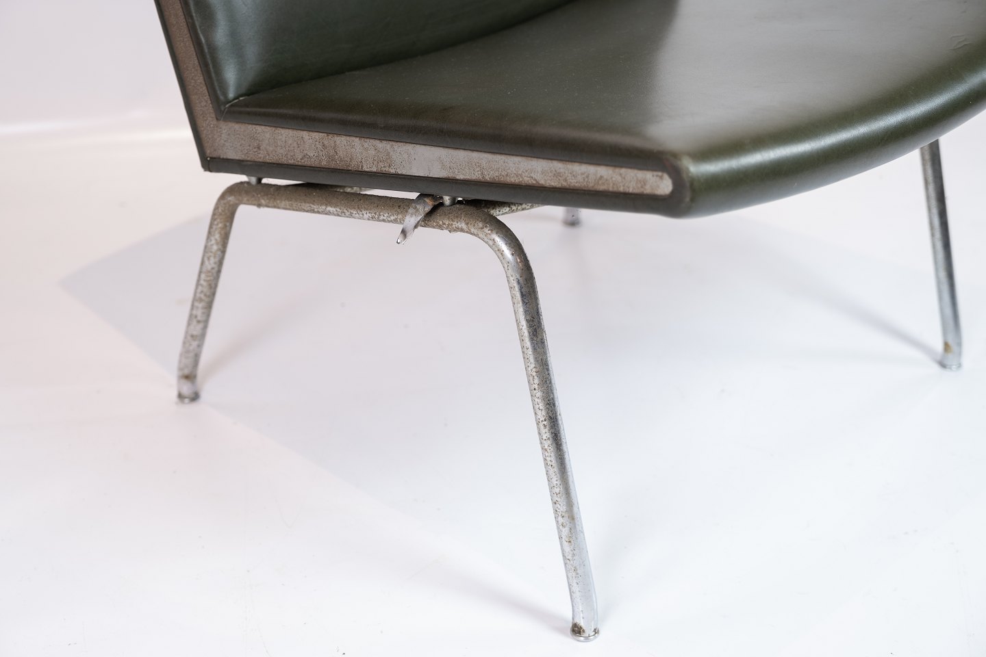 The CH401 lounge chair, designed by Hans J. Wegner in 1958, is a notable piece from the minimalist Kastrup Series, which continues to be in use in the inviting interior of Copenhagen Airport to this day.