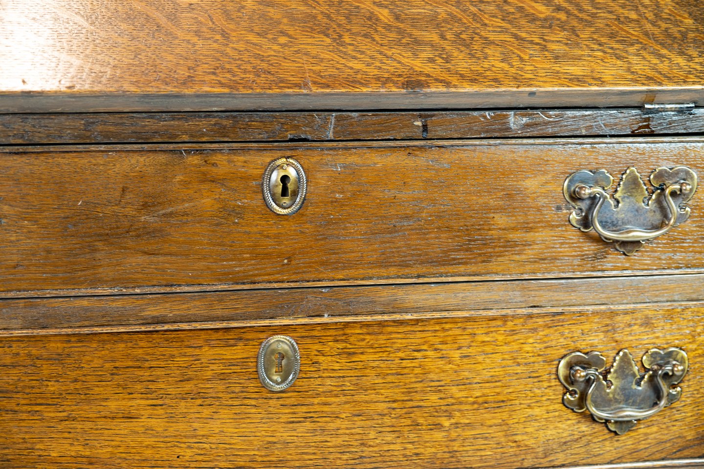 Chatol i egetræ og håndtag af messing, fra England omkring år 1840. Møblet er i flot antik stand.