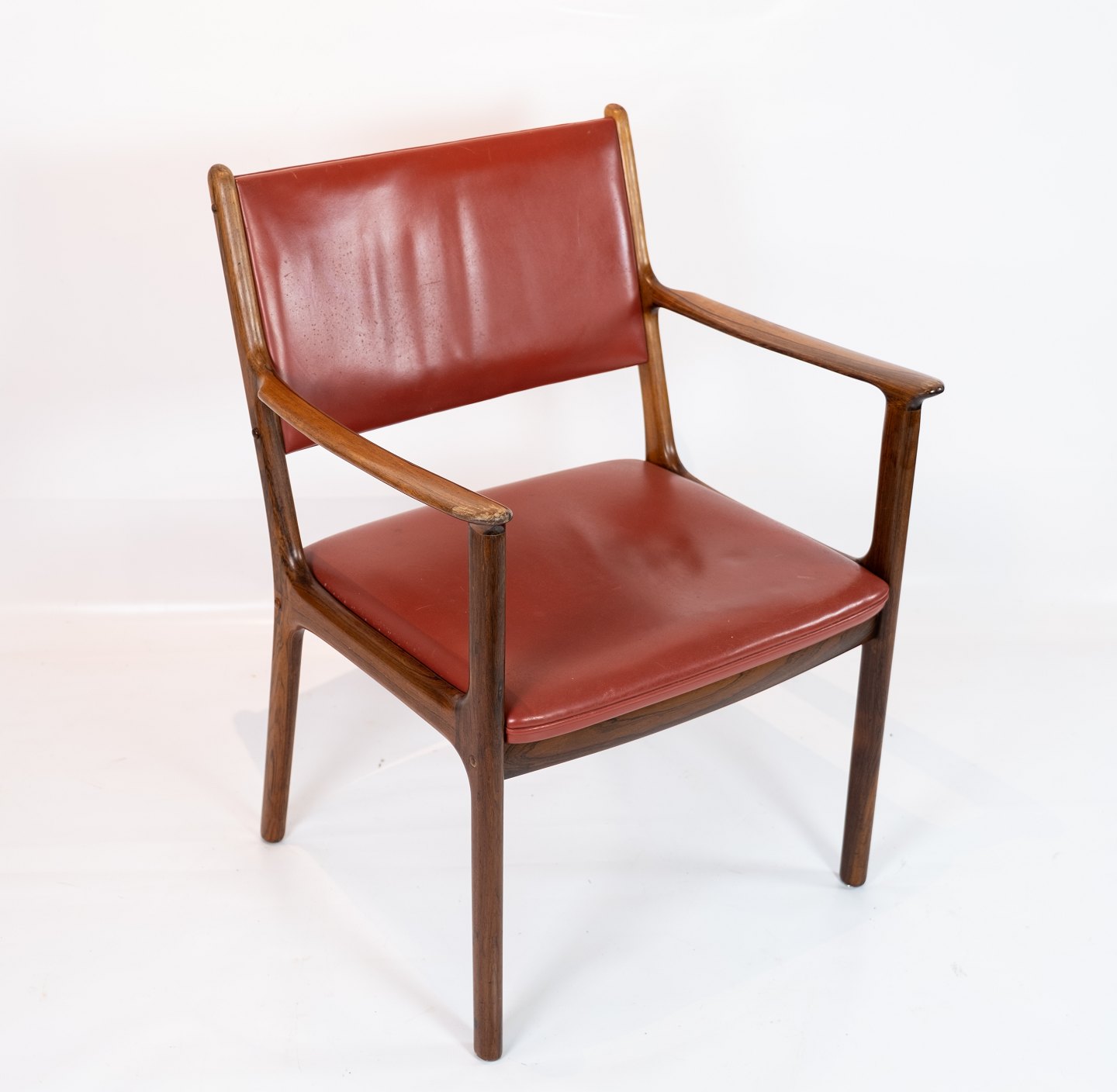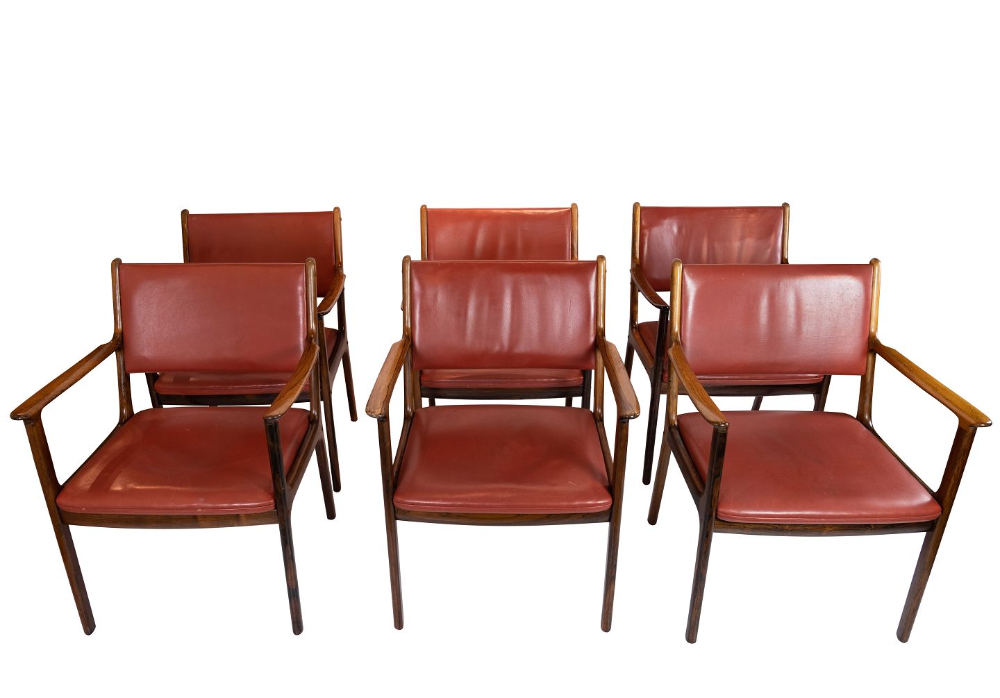 Set of Six Armchairs - Model PJ 412 - Red Brown Leather - Rosewood - Ole Wanscher - P. Jeppesen Furniture - 1960