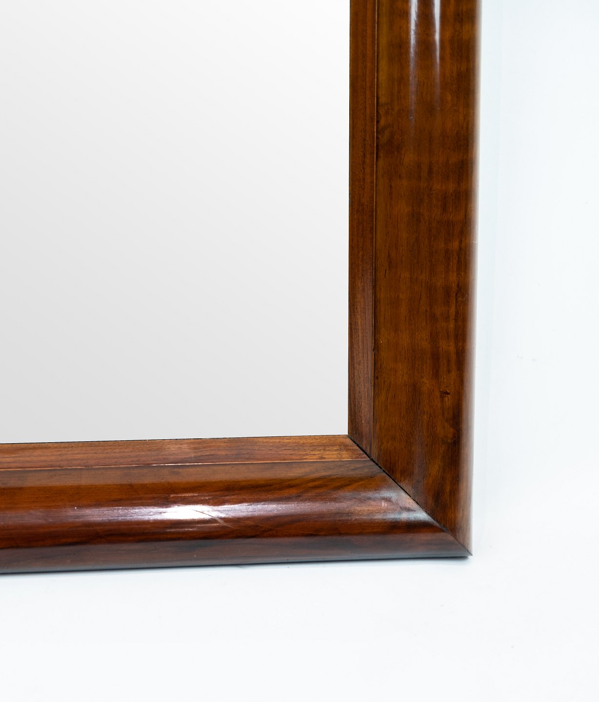 SoldTall mirror with frame of polished mahogany, in great vintage condition.