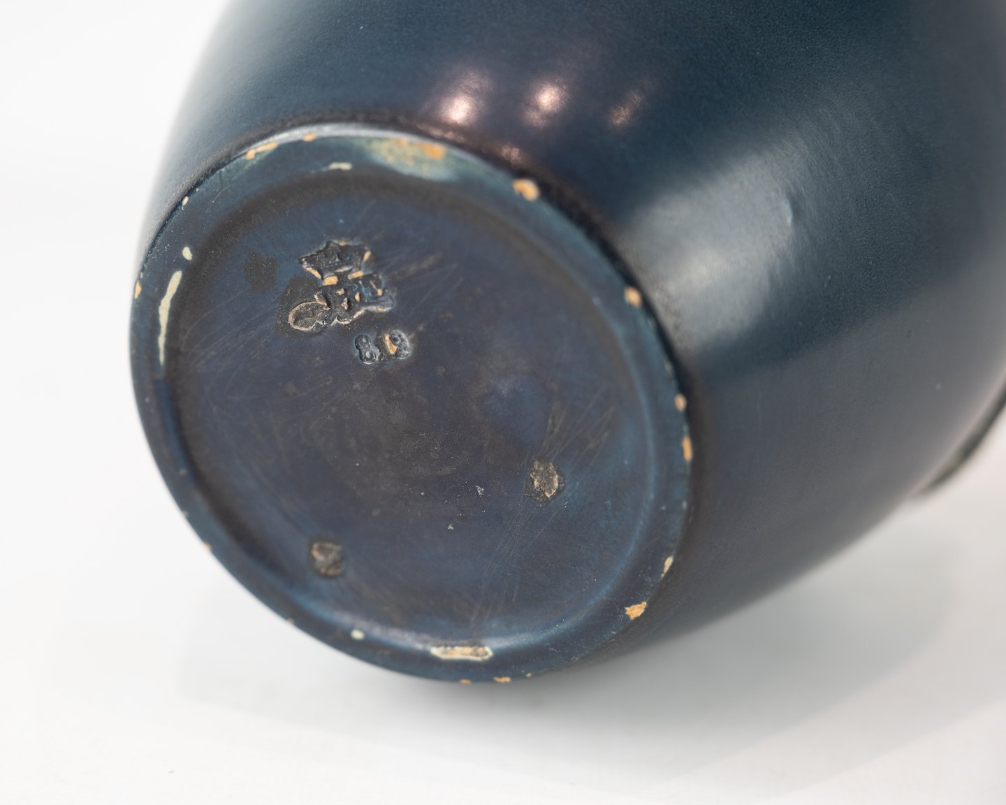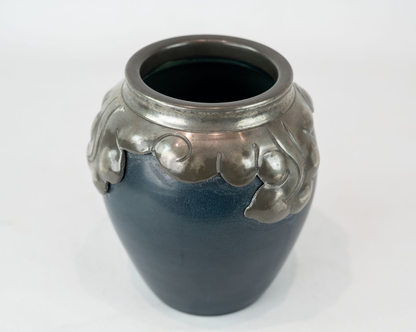SoldCeramic vase in dark blue decorated with metal edge by Ibsen Enke.
