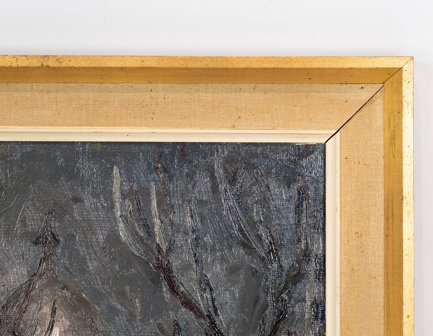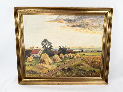 Oil painting in dark colours signed GE and with gilded frame.